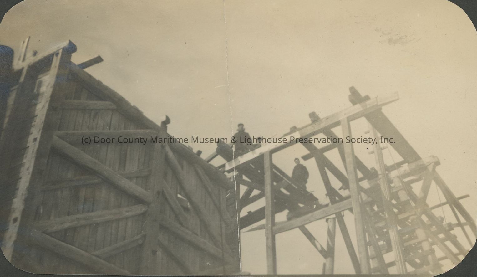 Workers on quarry trestle
