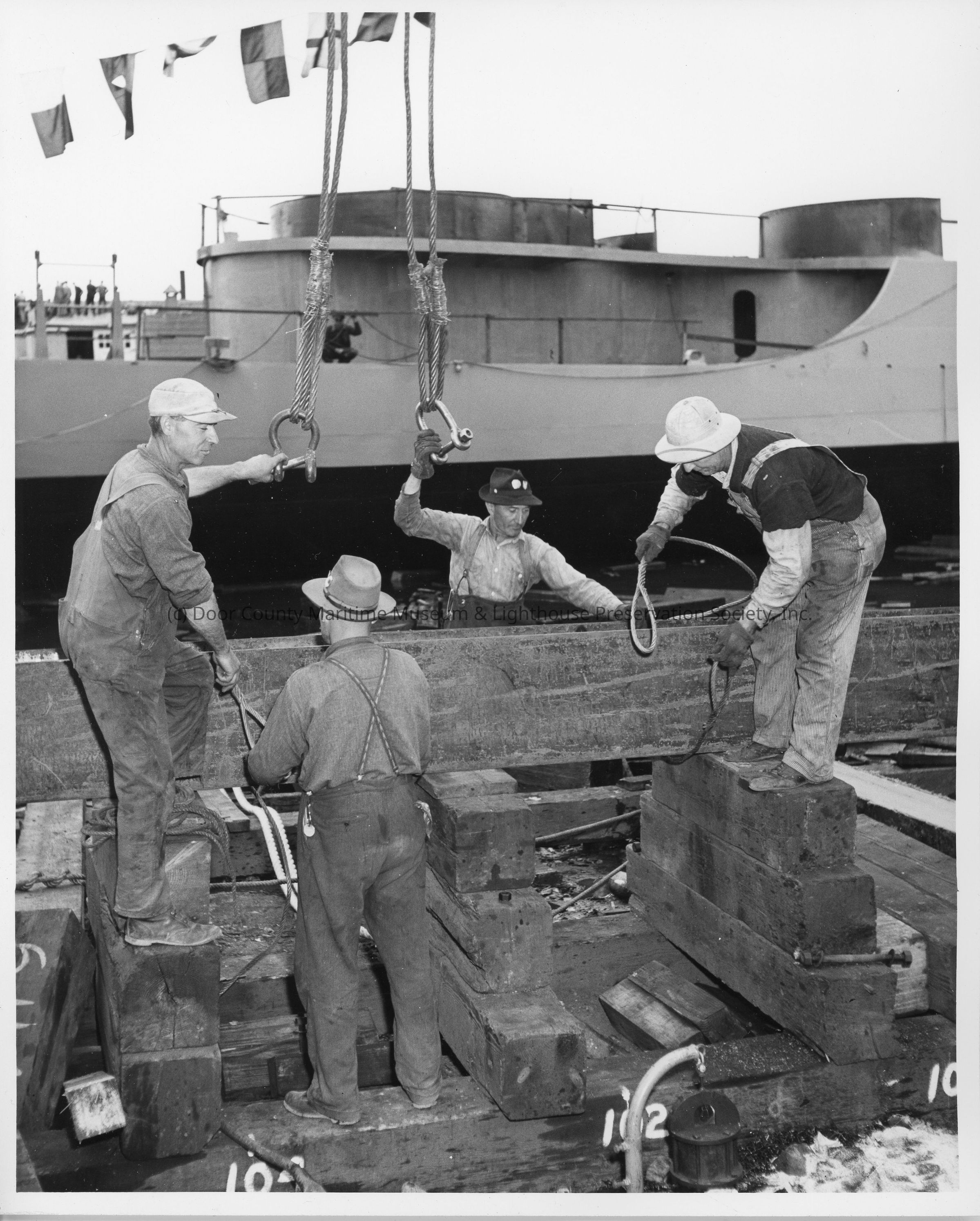 workmen laying keel of PF-66 USS ReadingEntry/Object ID