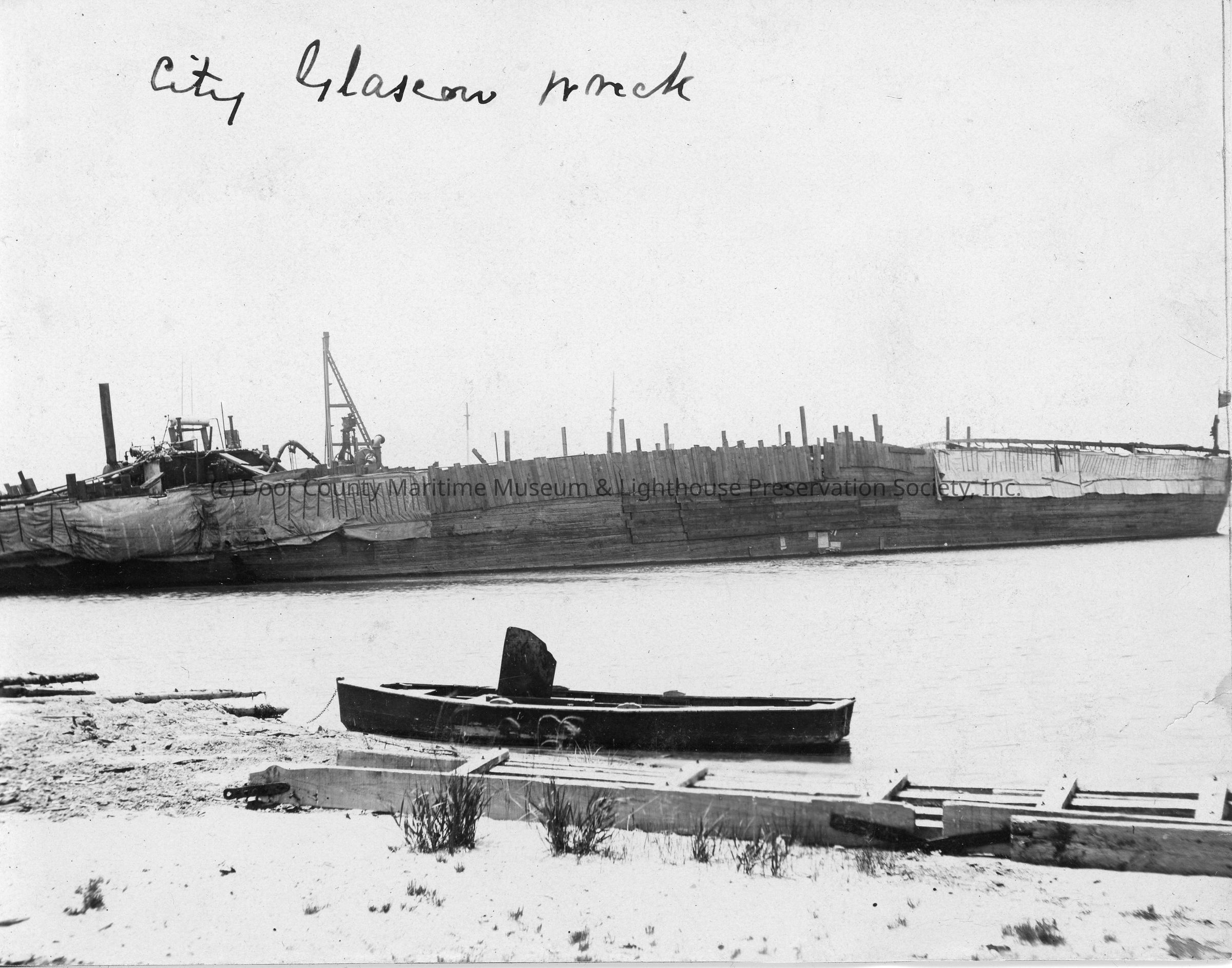 Wreck of the vessel City of Glasgow with a small skiff in front. "City Glasgow Wreck"Location