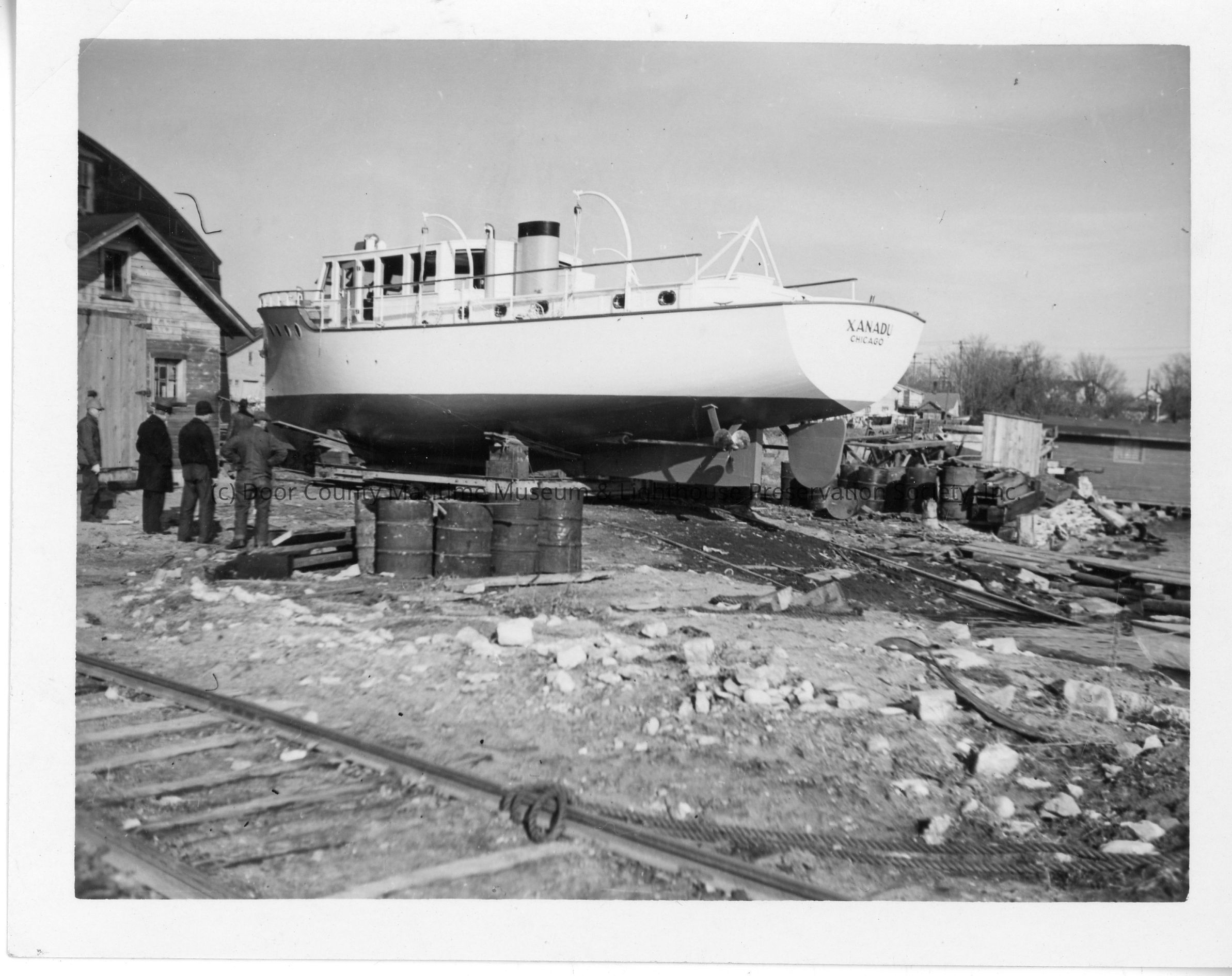 Xanadu in crib at Peterson Boat Works