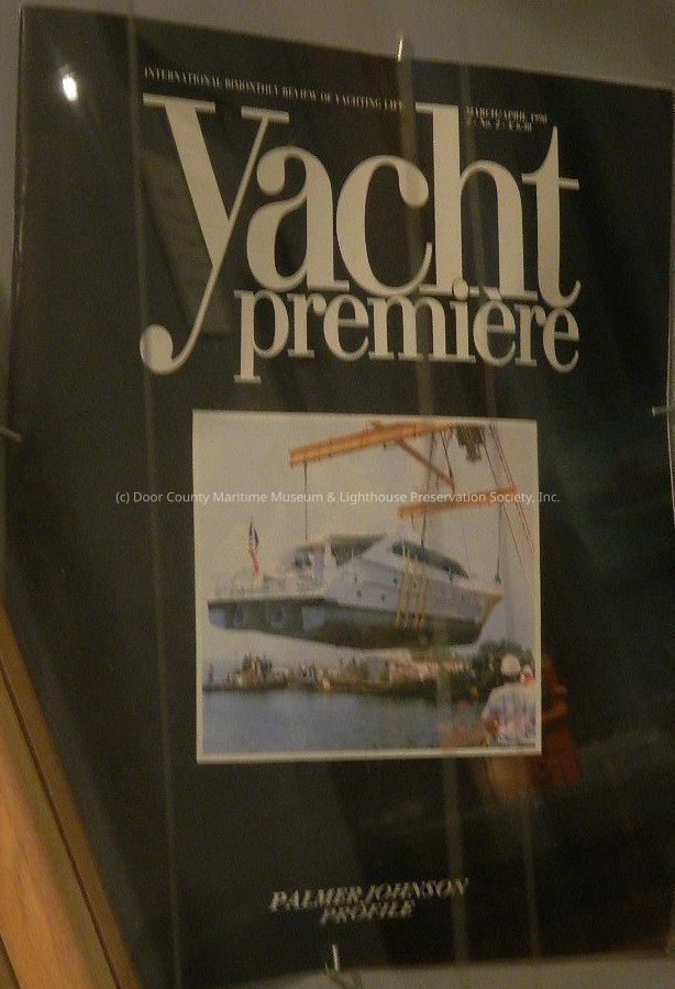 Excerpt from magazine "Yacht Premier"; international bi-monthly review of yachting life; No. 2; Palmer Johnson profile; black cover; white print; photograph of yacht in "lift" on front cover; March-April 1990.Location
