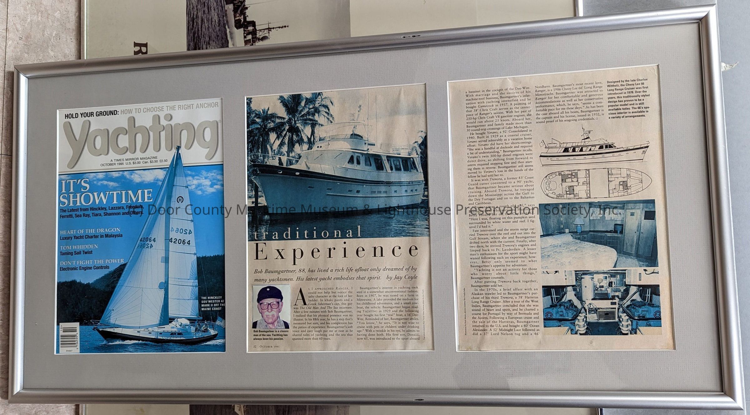 (1) Color cover "Yachting" photo "The Hinckley" (2) Article about Bob Baumgartner "Traditional Experience" (3) continuation of articleLocation