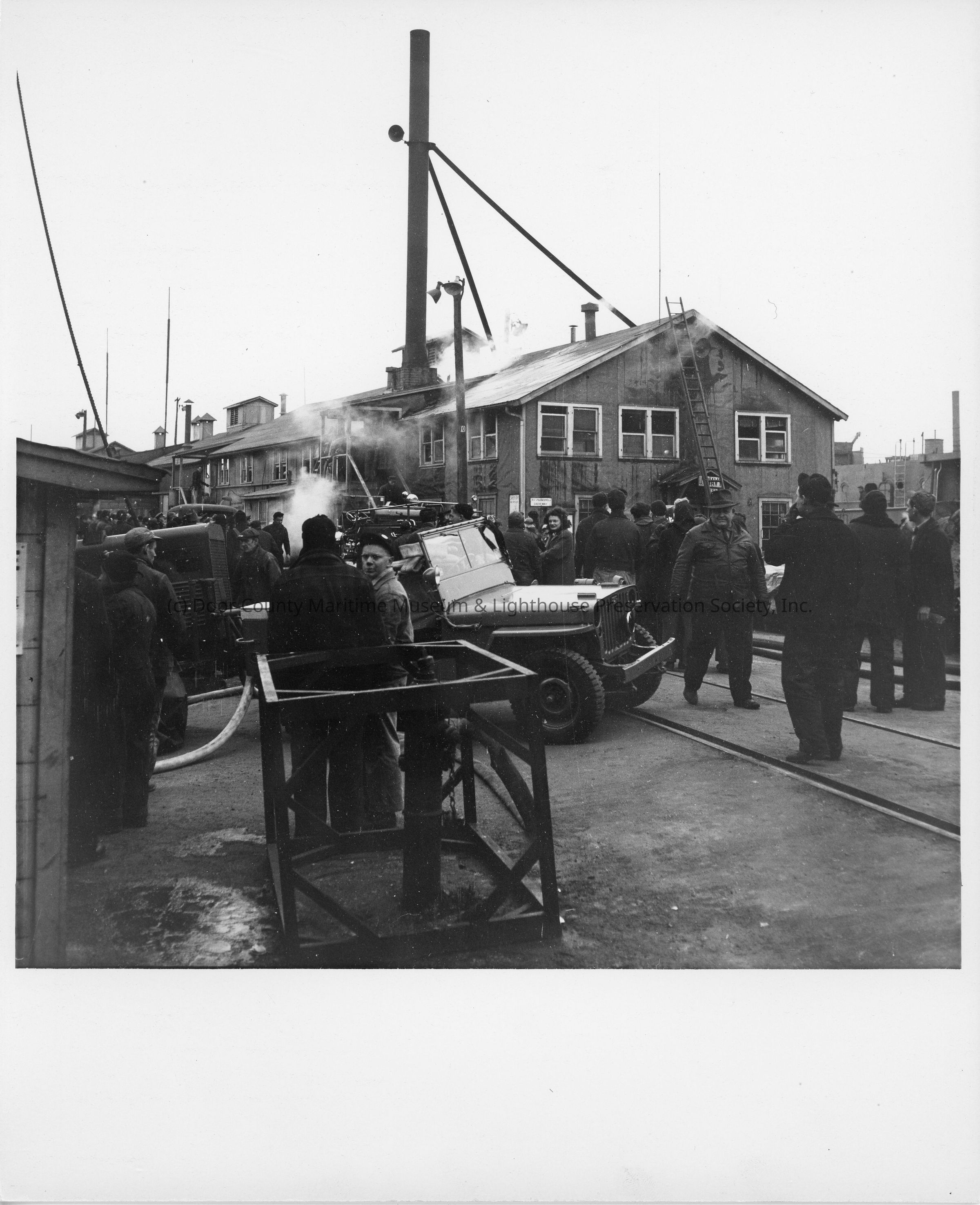 yard building crowd and jeep
