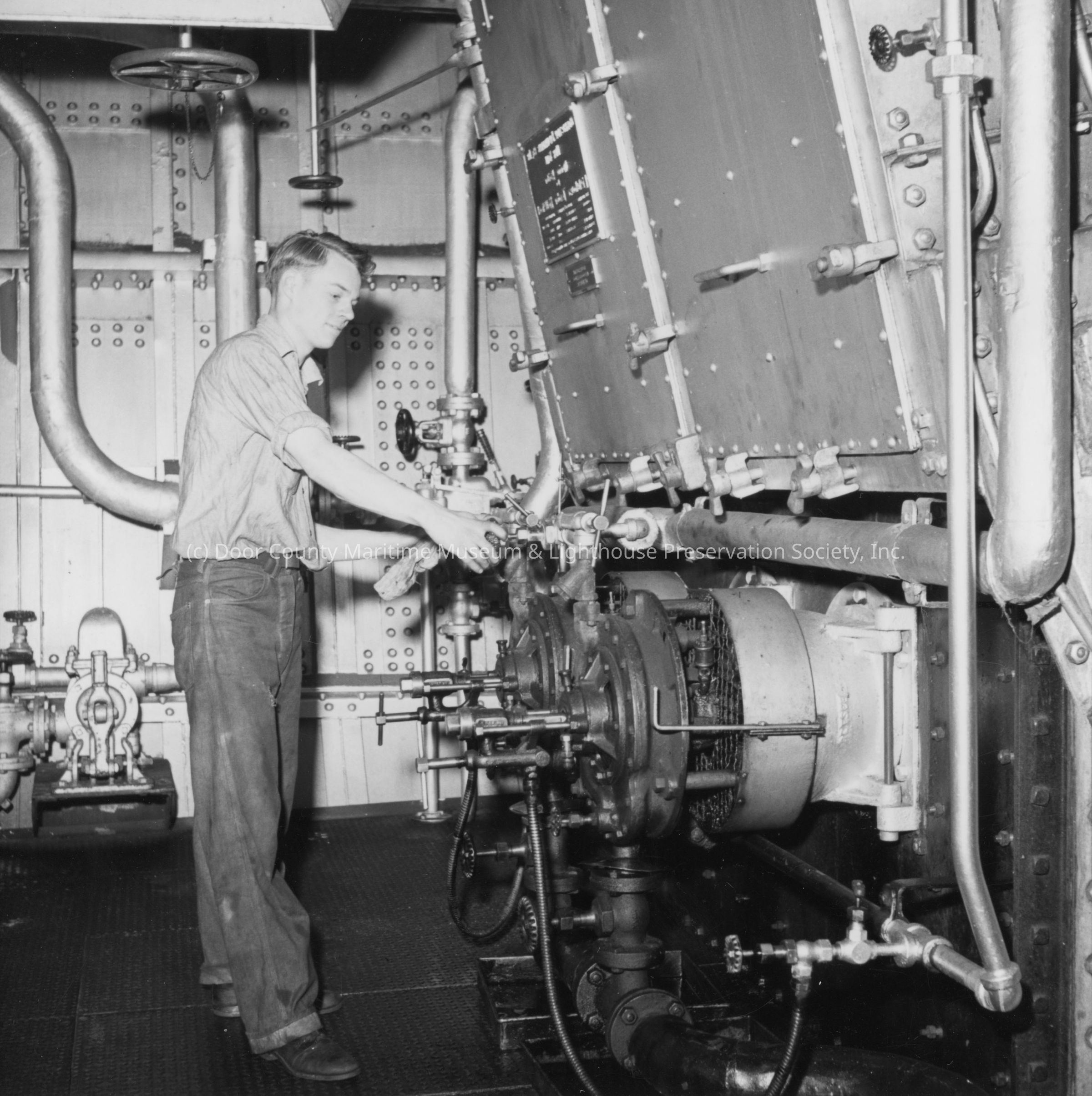 Young crewman adjusting valve on lighthouse tender HollyhockEntry/Object ID