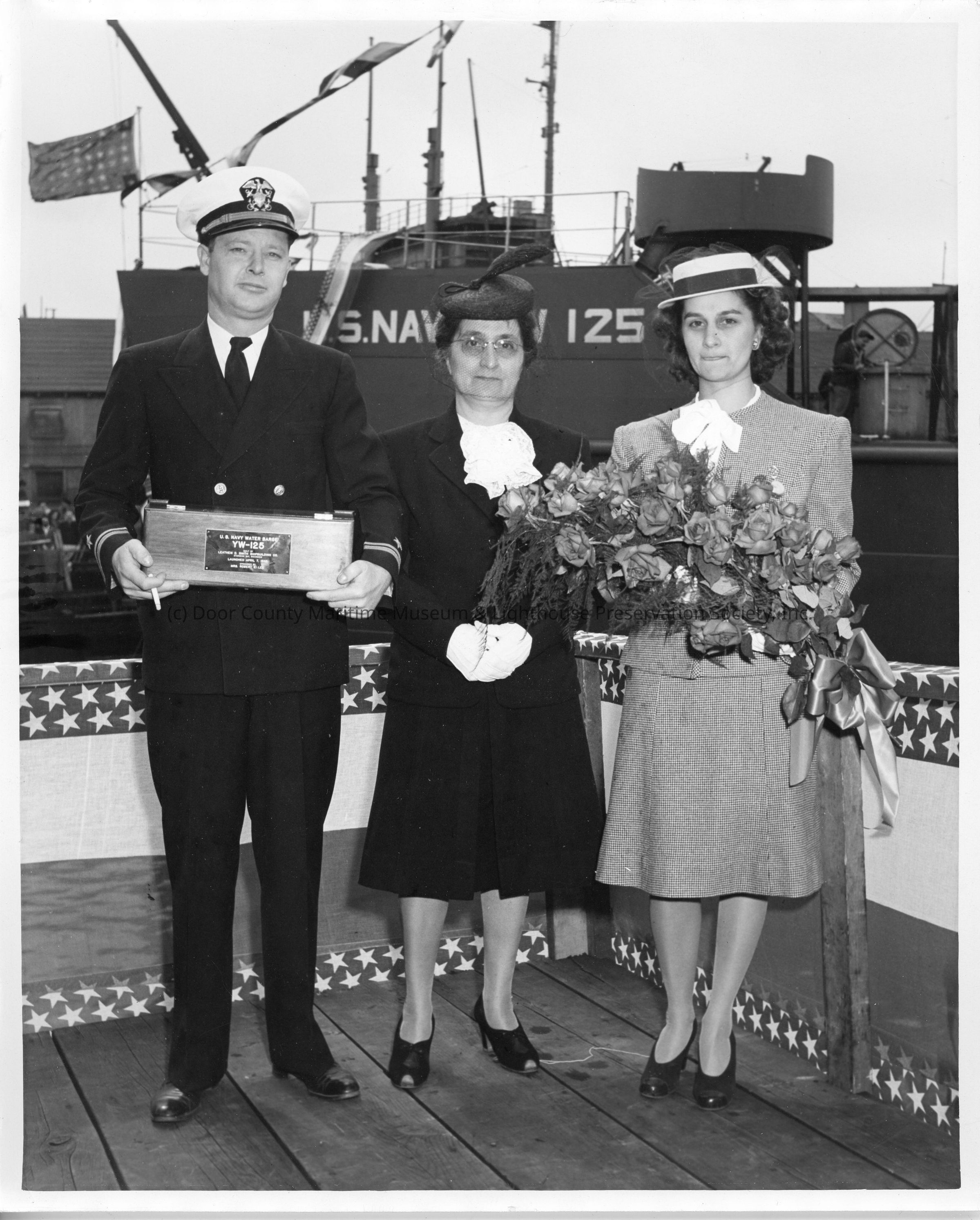 YW-125 sponsor party posing in front of vessel