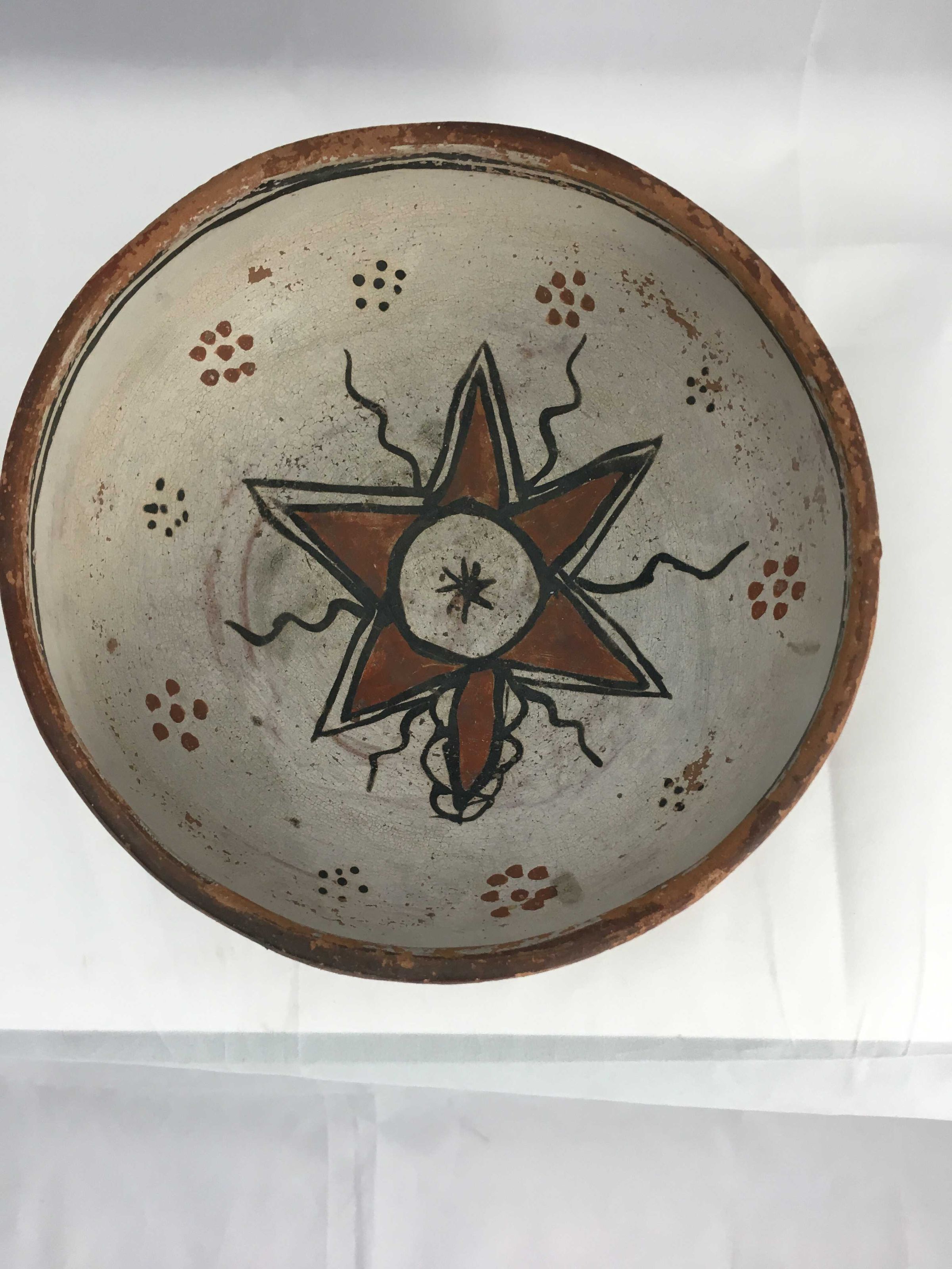 Nice old bowl, the interior design is in pretty good shape but the exterior surface is heavily worn.Ethnography
