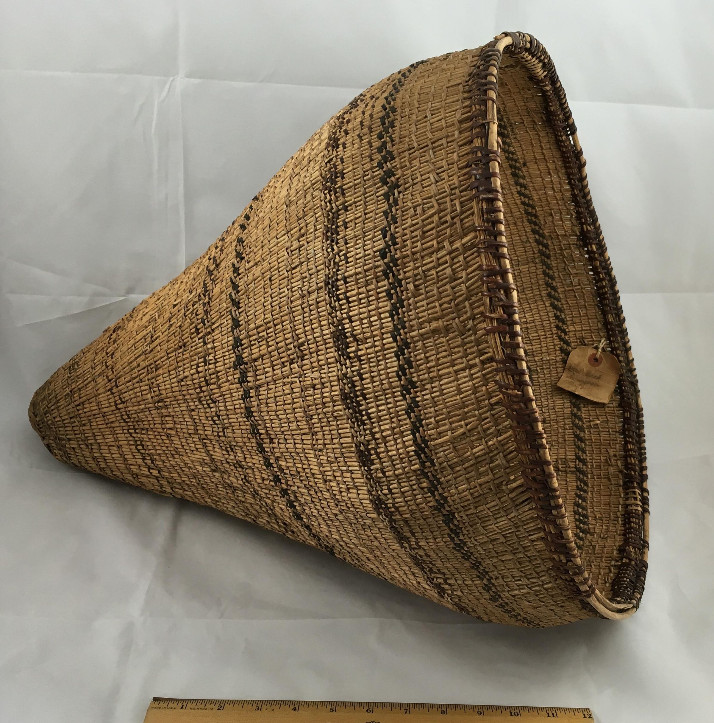 Several bands of twining near the rim and the first several bands at the base are 2/3 interval arrangement.