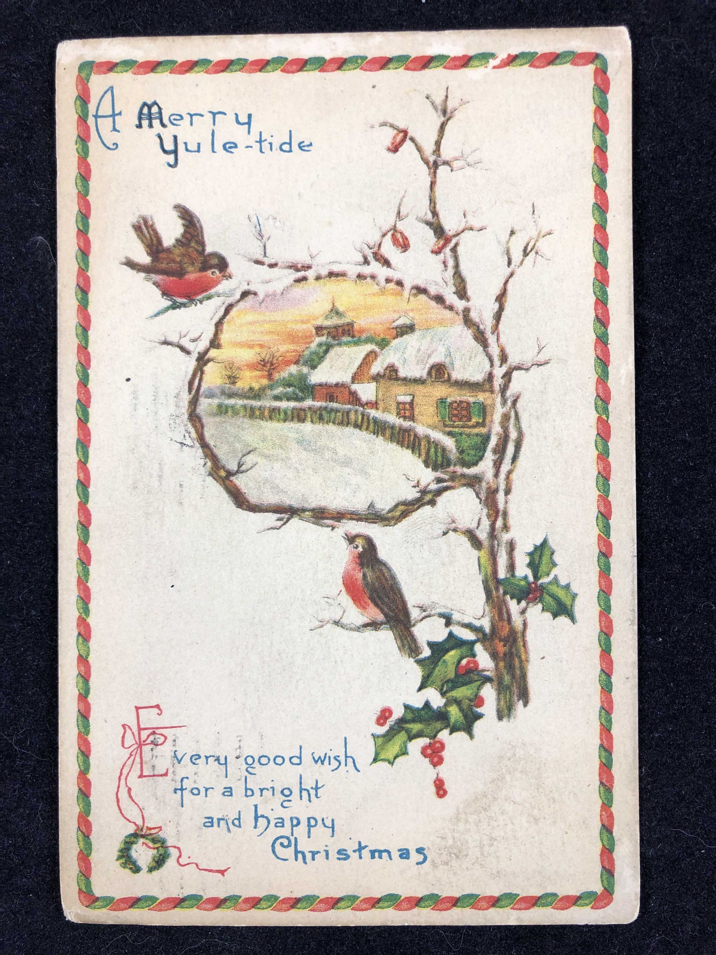 12/22/17 Dear Brother Frank: - We were all sorry to hear that you could not be home for Xmas; but we hope for the best that you can come the 26th. as Joe H. was here today and told us that if nothing turned up you could come. I suppose there is no hopes for E ?? coming home for some time. I bet he feels blue about it. We sent him a box as a little xmas gift to cheer him up a bit. Here's wishing you a merry merry Christmas. Hope you will enjoy the contents of that box. With love from your sister Lucy