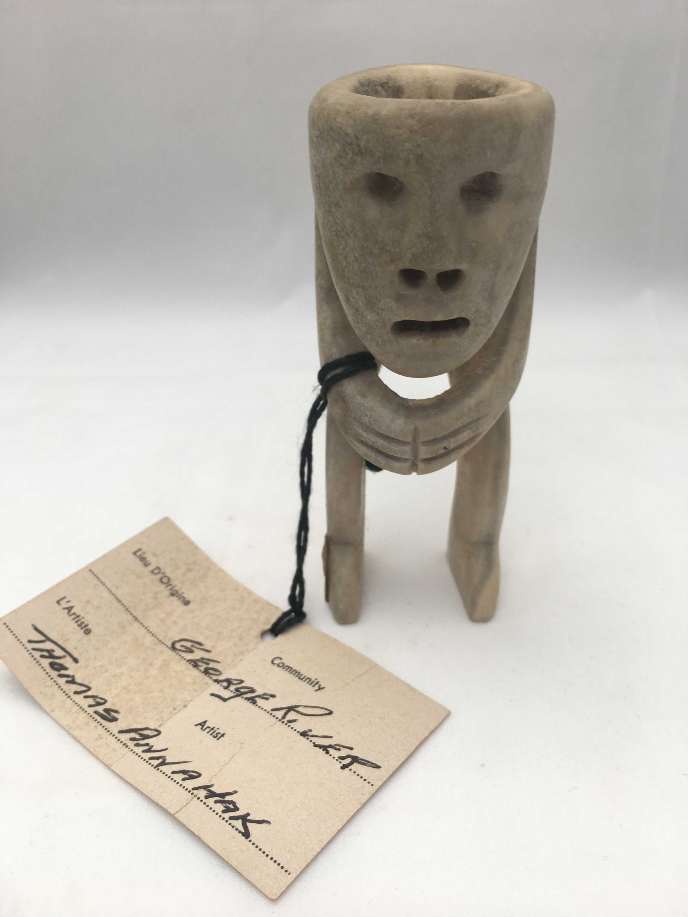 Per the small label affixed to the right foot and the tag tied to the figure, it was created by Thomas Annahak (or Annanak?) of George RiverDimensions