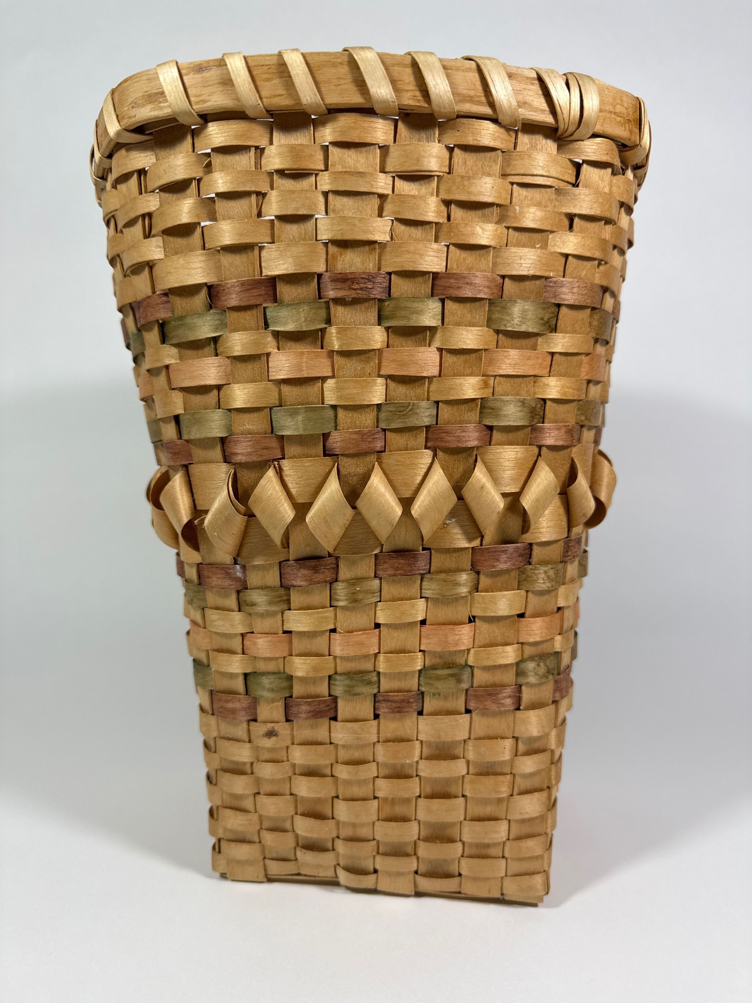 The body of the basket is nearly all 1/1 plain plaiting, while the base/start is 2/2 twill.