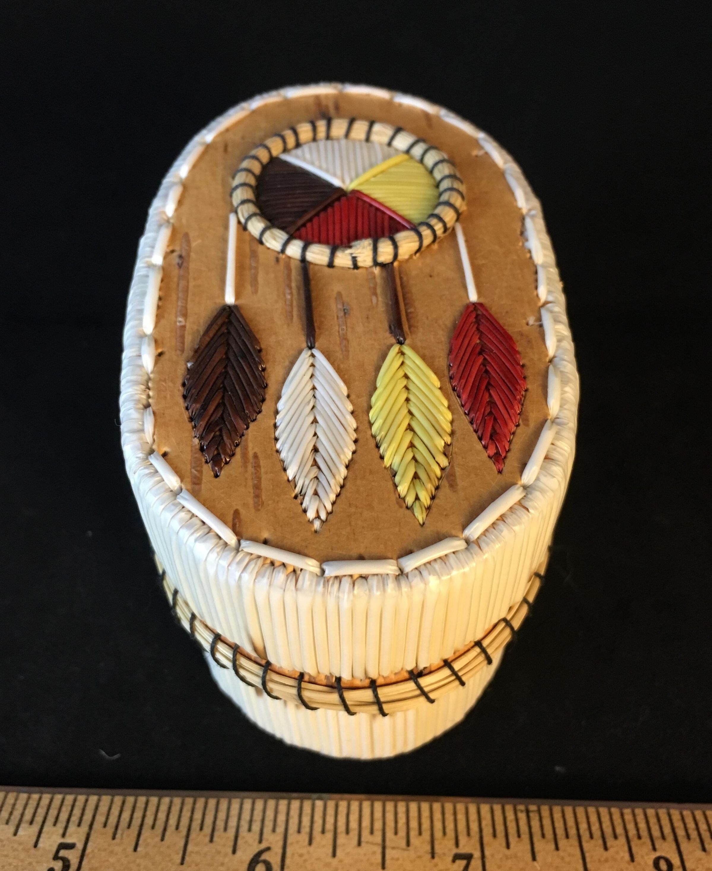 Ojibwe Oval Quill Box With Four DirectionsDescription