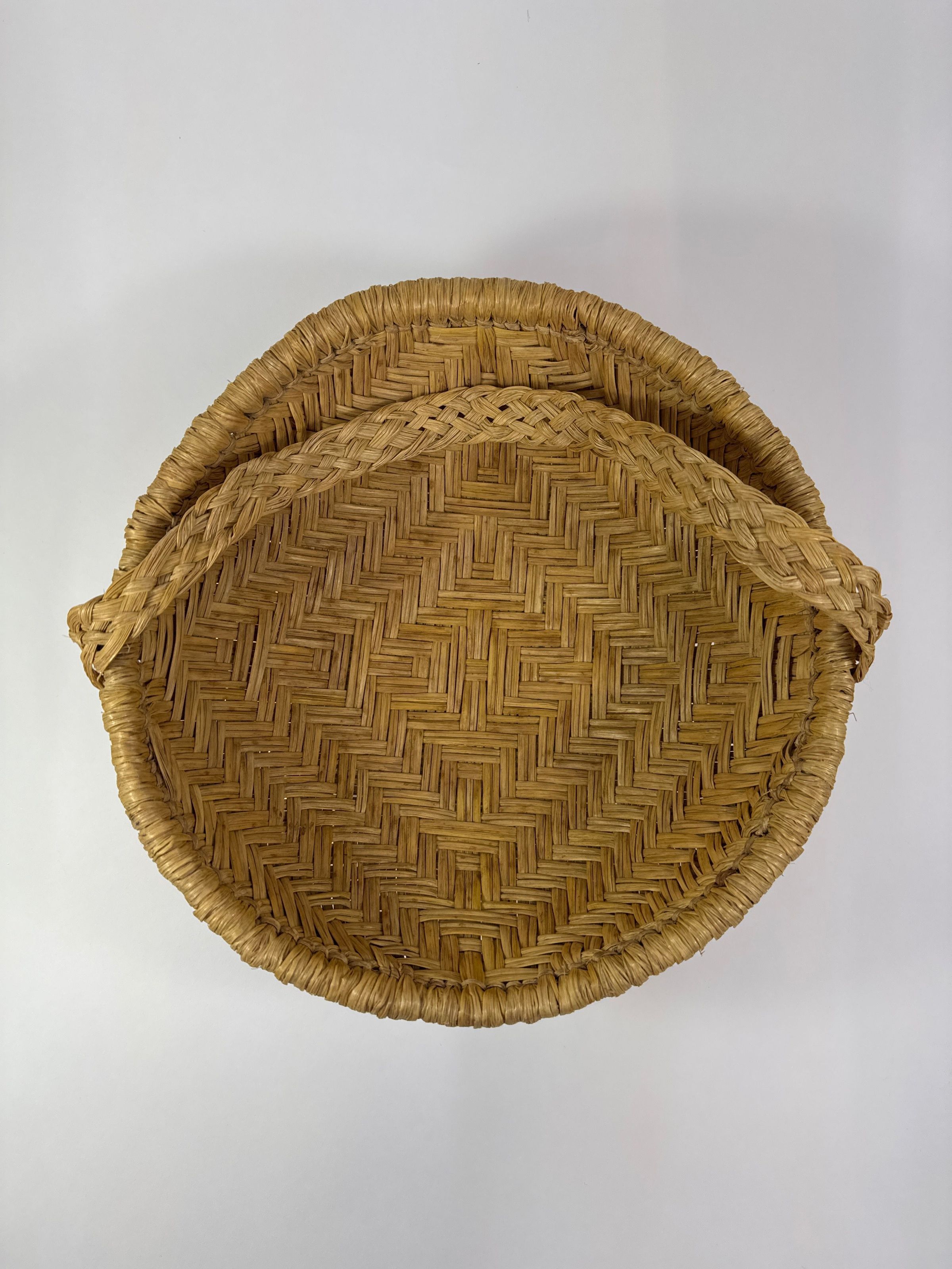 Hopi or Pueblo twill-plaited ring basket (seller identified it as Hopi) with a great braided yucca handle.
