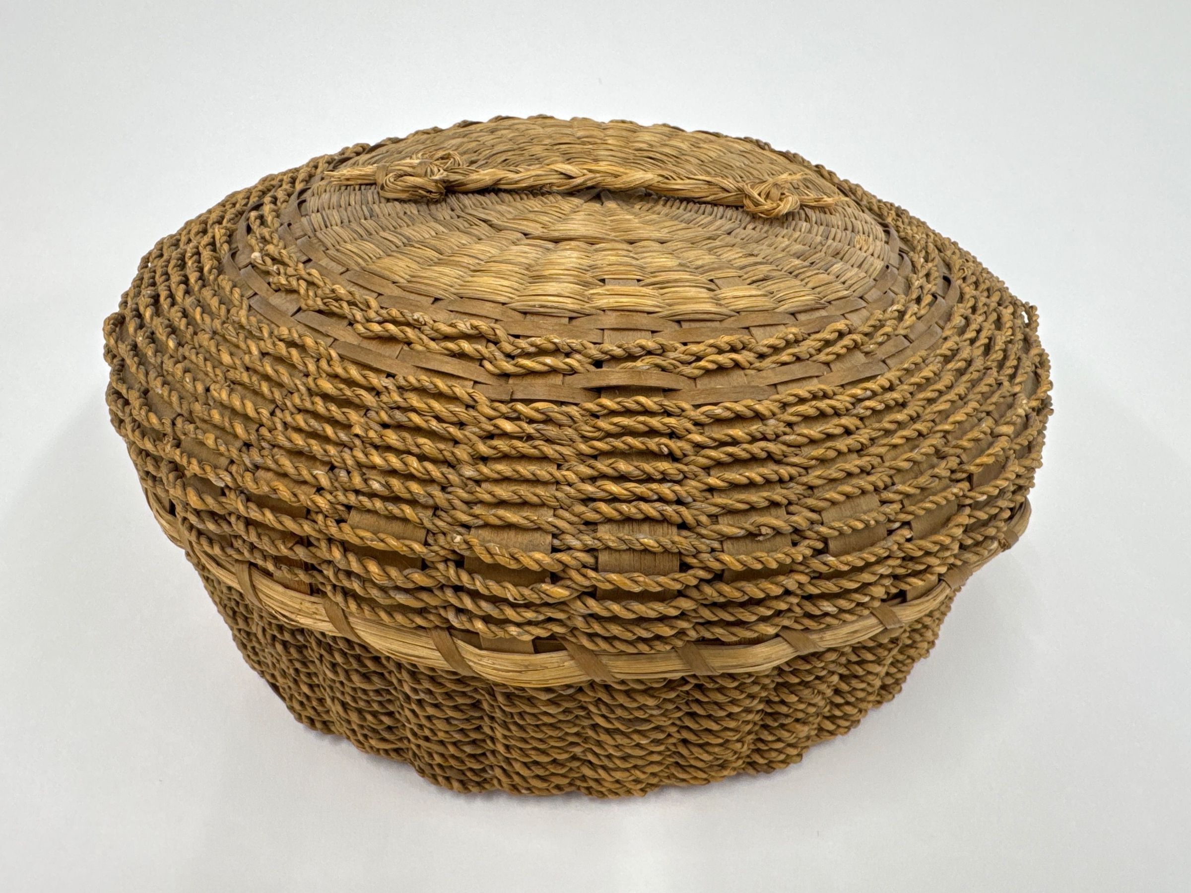 Large Ash Splint and Sweetgrass Lidded BasketDescription