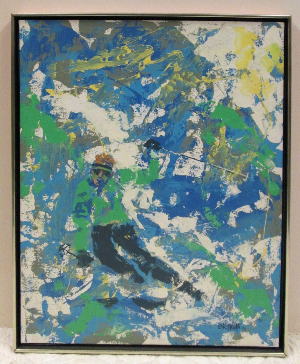 This painting by Swedish American artist Magnus Engstrom celebrates the season of snow with this colorful depiction of a skier enjoying the slopes. The figure almost blends in with the background, twisted in a dynamic pose to characterize this fast paced and exhilarating activity. Just because it is cold out doesn’t mean that outdoor fun isn’t an option so grab your gear and take part in this centuries old sport before the snow is gone.