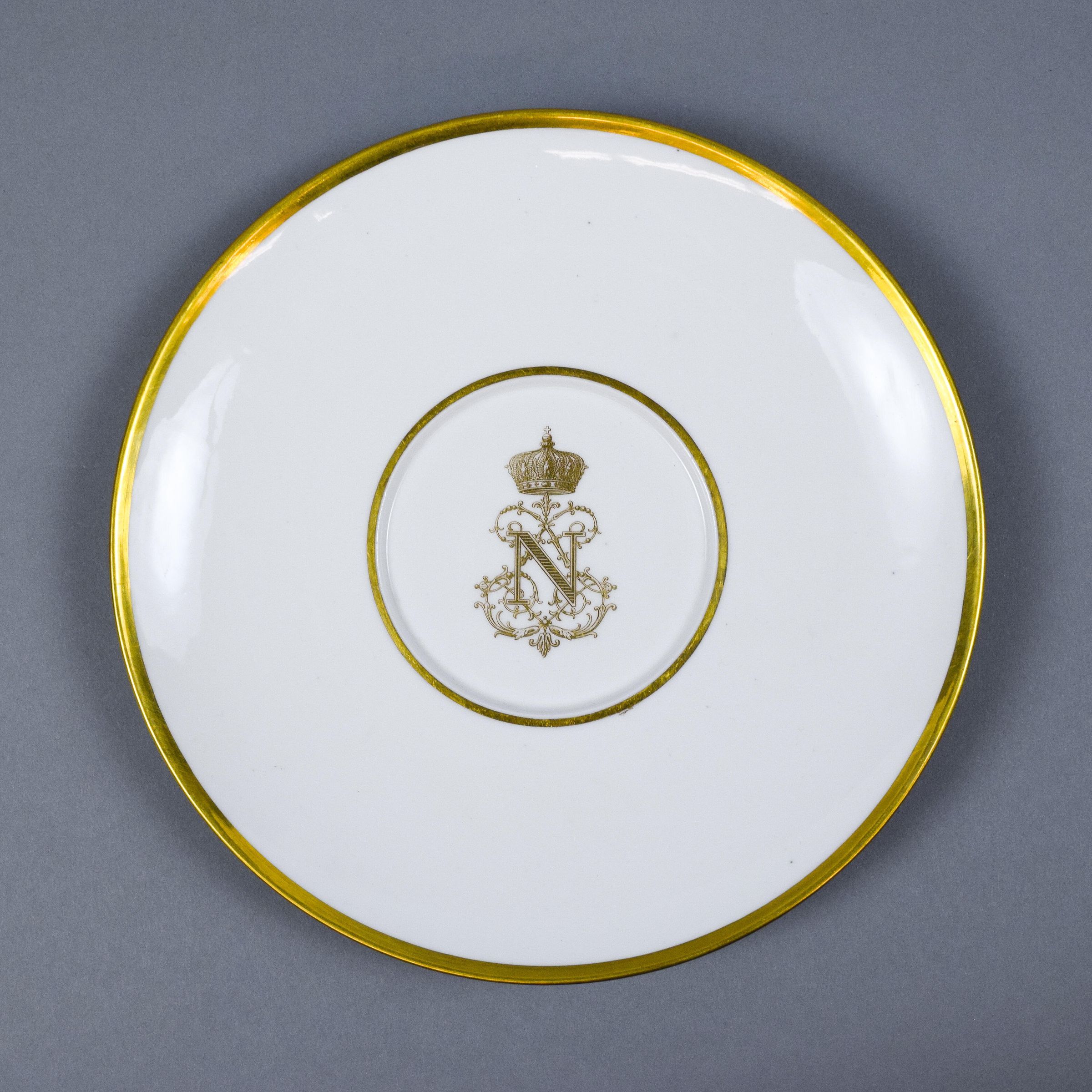 Not only were dinner services designed to be able to combine multiple sets together, but dessert wares, tea wares, and other dining accoutrement would need a similar design in order to be combined for large events. Seen here is a dessert plate, small underliner, and milk jug from Napoleon III’s tea and dessert services.