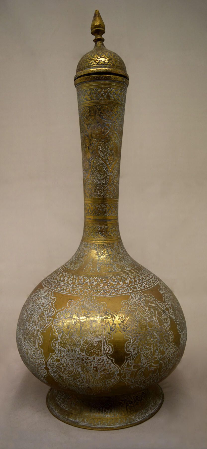 The decorative arts of Exoticism were highly eclectic, including porcelains with motifs such as sphinxes and obelisks, brass objects with densely patterned decoration and tiles decorated in turquoise, blue and green. Most of the pieces were imported, but as the style gained popularity manufacturers in Europe started to create decorative pieces inspired by non-Western cultures. #1640 A, B, 515, 895, 516, 54