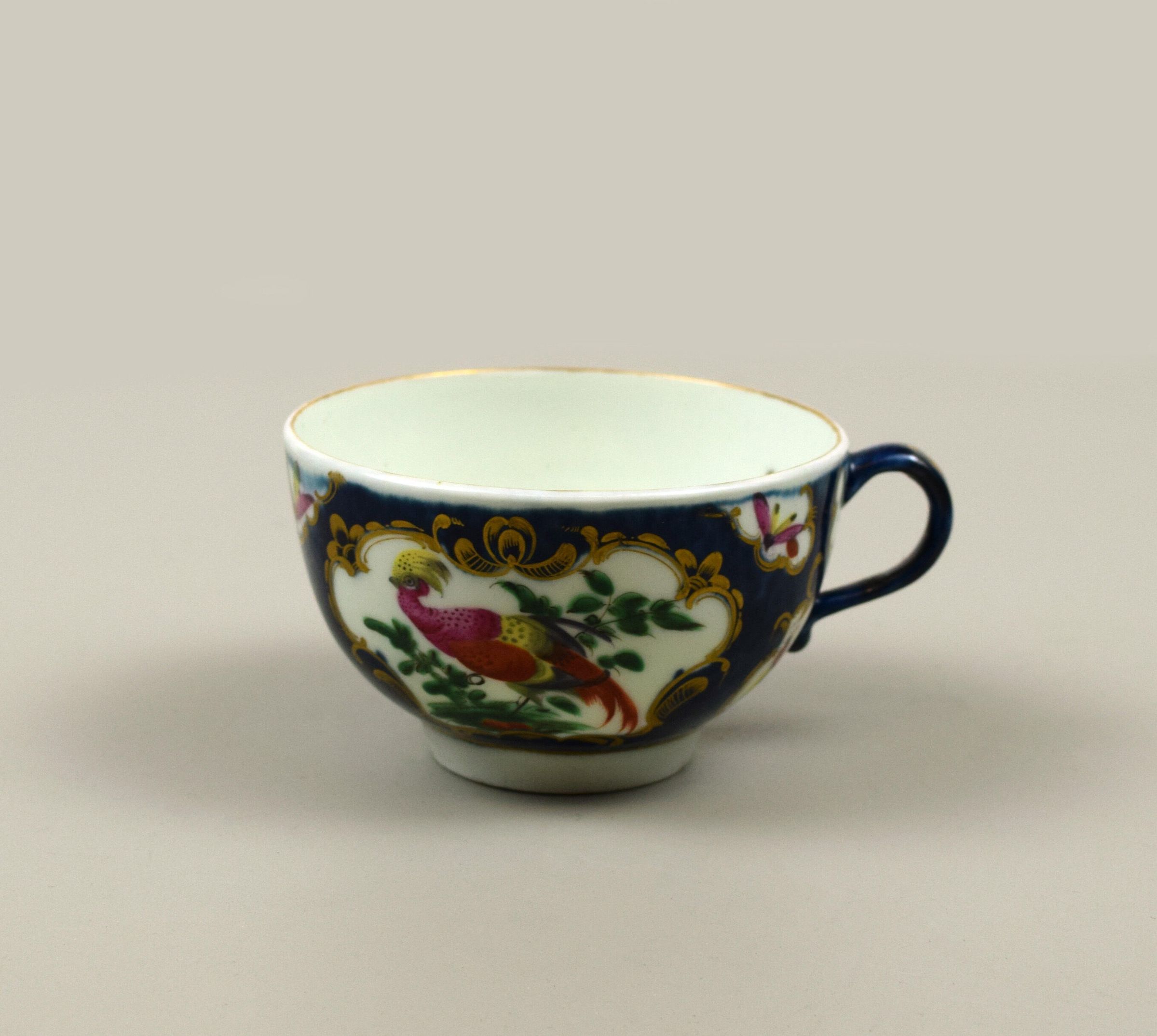 The incorporation of random naturalistic elements such as birds and insects as decorative motifs on ceramics was made popular by the Meissen tradition of painting these creatures over imperfections in the ceramic body caused by the firing process.