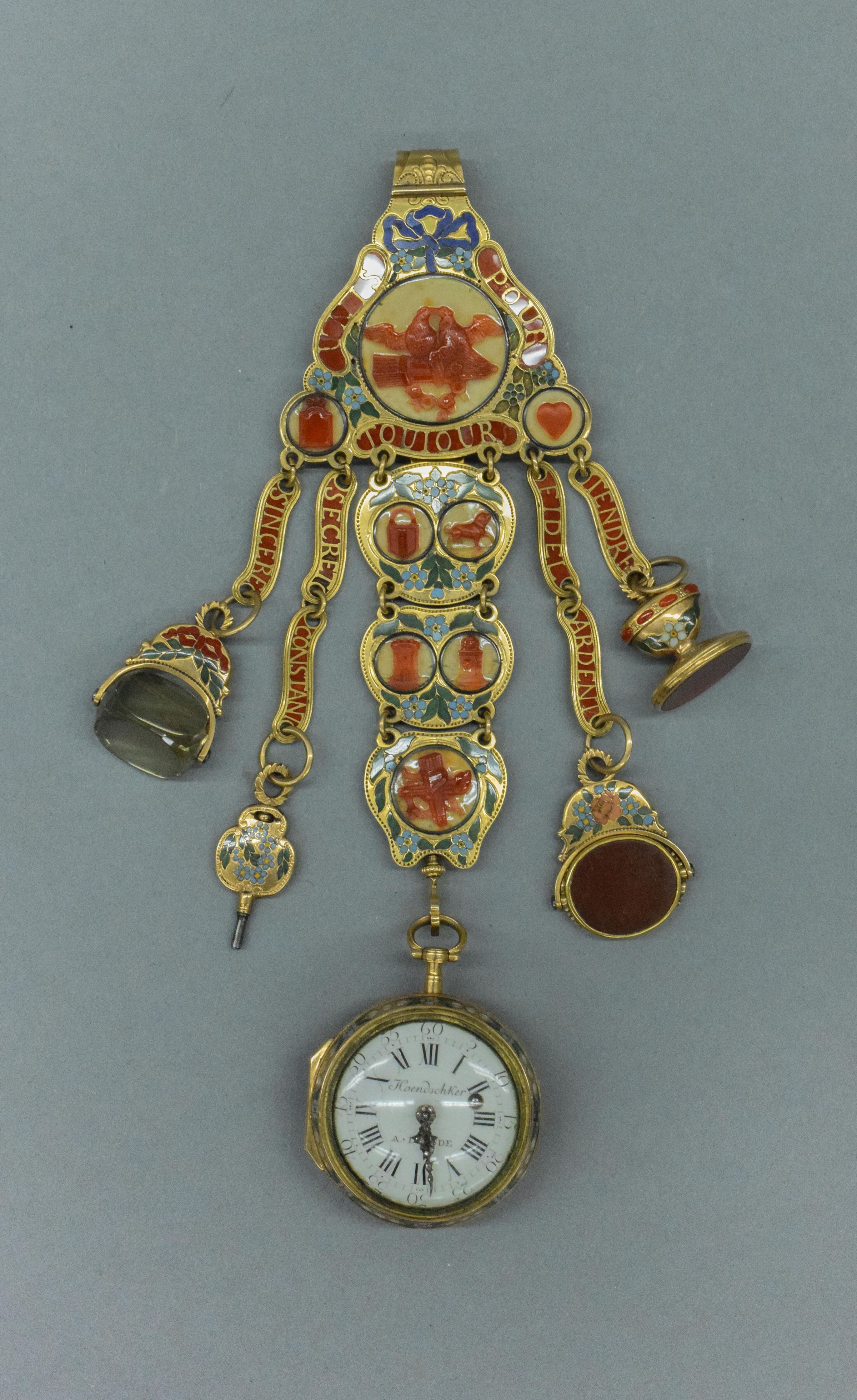 For November, The Drexel Collection has chosen its chatelaine watch, thought to be owned by Marie Antoinette. The watch was created around 1780 by Johann Christian Neuber in Dresden, Germany. Chatelaine watches were fastened to a belt or pocket and could be used by any gender. In 2012, Drexel’s Chatelaine Watch was part of the exhibition Gold, Jasper, and Carnelian: Johann Christian Neuber, and toured New York and Paris.