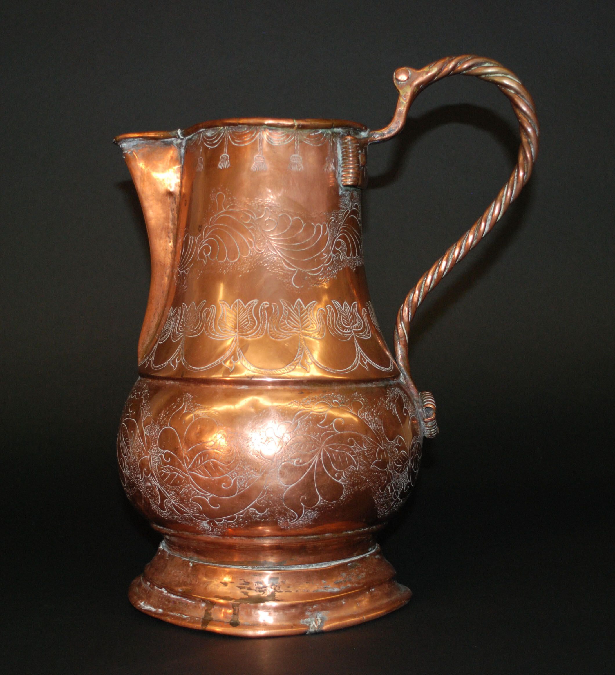 This pitcher was made in the late 18th or early 19th century in the Netherlands. The Netherlands had a strong metalworking history stretching back to the Bronze Age.Label Type