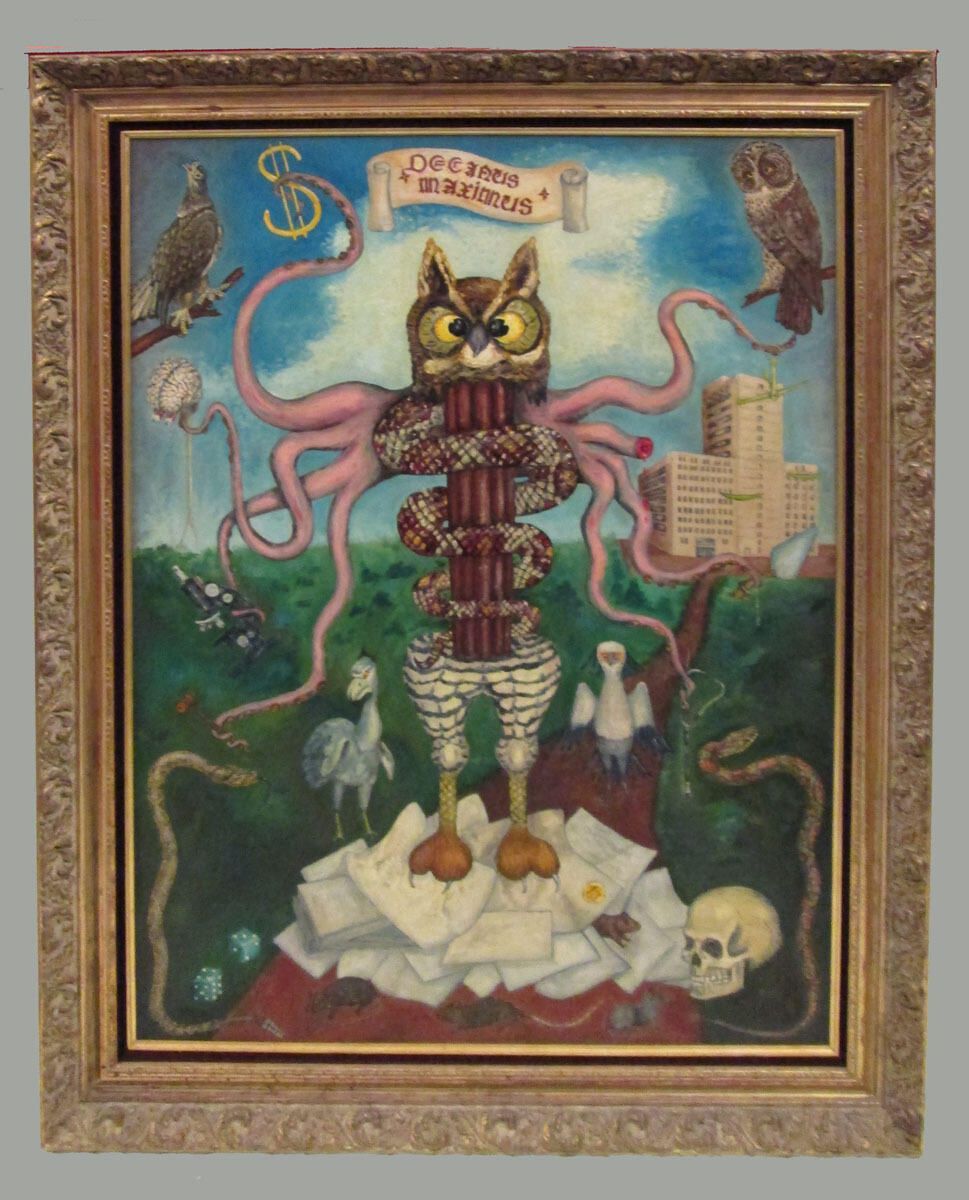 Decanus Maximus (Big Dean) is both a book and a painting, created by the same author/artist, Dr. Joseph DiPalma. The full title of the book is Decanus Maximus: The Life and Times of a Medical School Dean. The painting is an allegory that visually captures life as a medical school dean. Dr. DiPalma was Dean of Hahnemann from 1968 to 1982. In his own words, he describes the painting’s meaning: