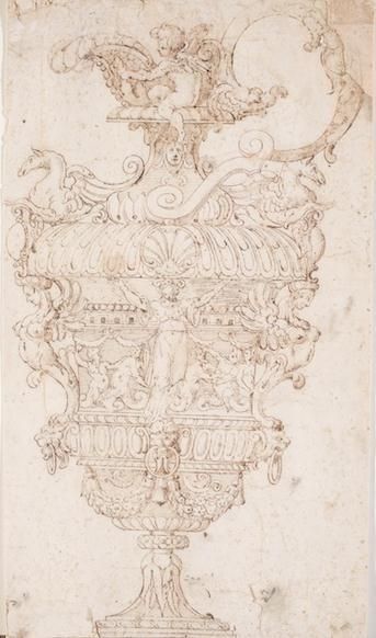 Girolamo Francesco Mazzuoli, called Parmagianino for his hometown of Parma, was an incredibly prolific early Mannerist painter and printmaker. Considered a prodigy, Parmigianino completed his first altarpiece at only sixteen and became a darling of the Papal court in his early wenties where they dubbed him the “new Raphael”. In this ornate ewer, which recalls the lily filled amphorae in Parmigianino’s fresco Ten Wise and Foolish Virgins in Parma, we see the elegant, elongated lines which characterize this late Renaissance style