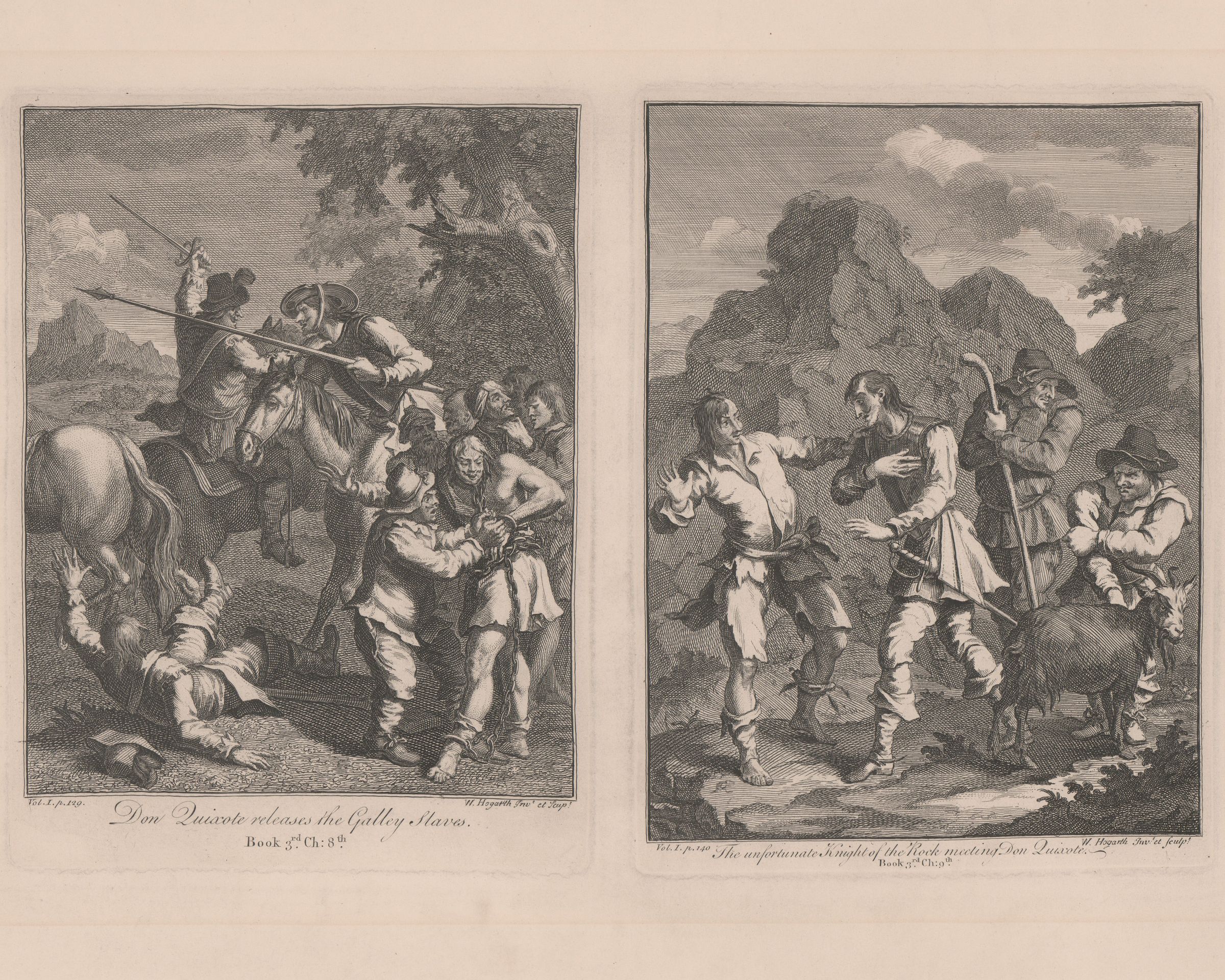 Don Quixote Releases the Galley Slaves; The Unfortunate Knight of the Rock Meeting Don Quixote