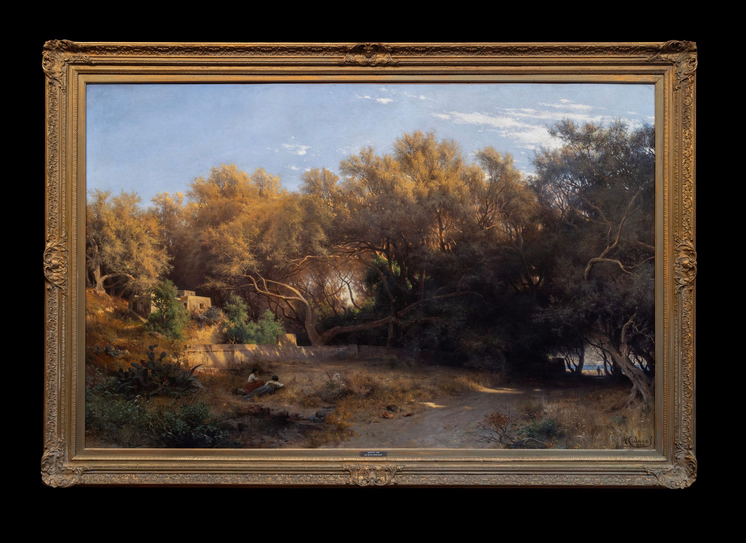 Artist Jean Baptiste-Arthur Calame studied under Oswald Achenbach, a Düsseldorf Academy painter whose works are also in the Drexel Founding Collection. Calame was especially skillful in his depiction of light creating a dramatic effect with the strong contrast between the left and right sides of the painting.