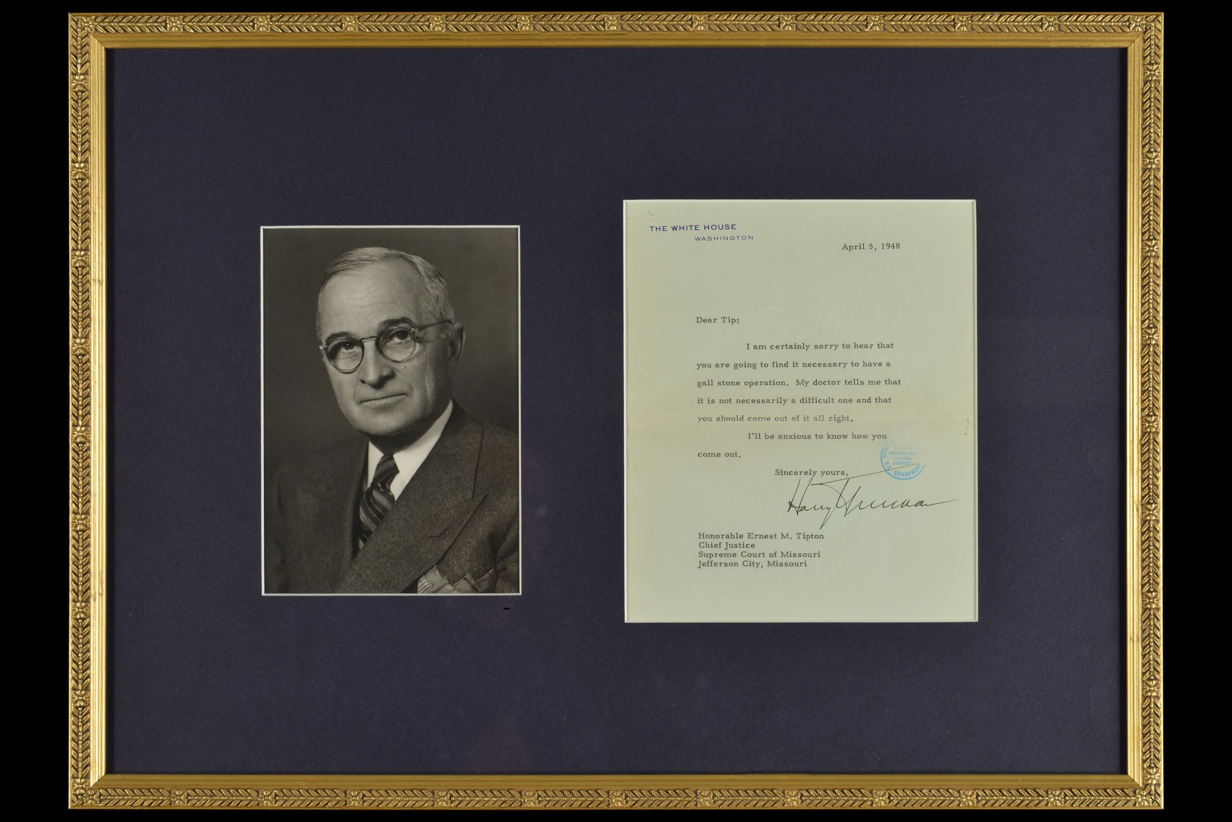 Letter from President Harry S. Truman to the Honorable Ernst M. Tipton, April 5, 1948Entry/Object ID