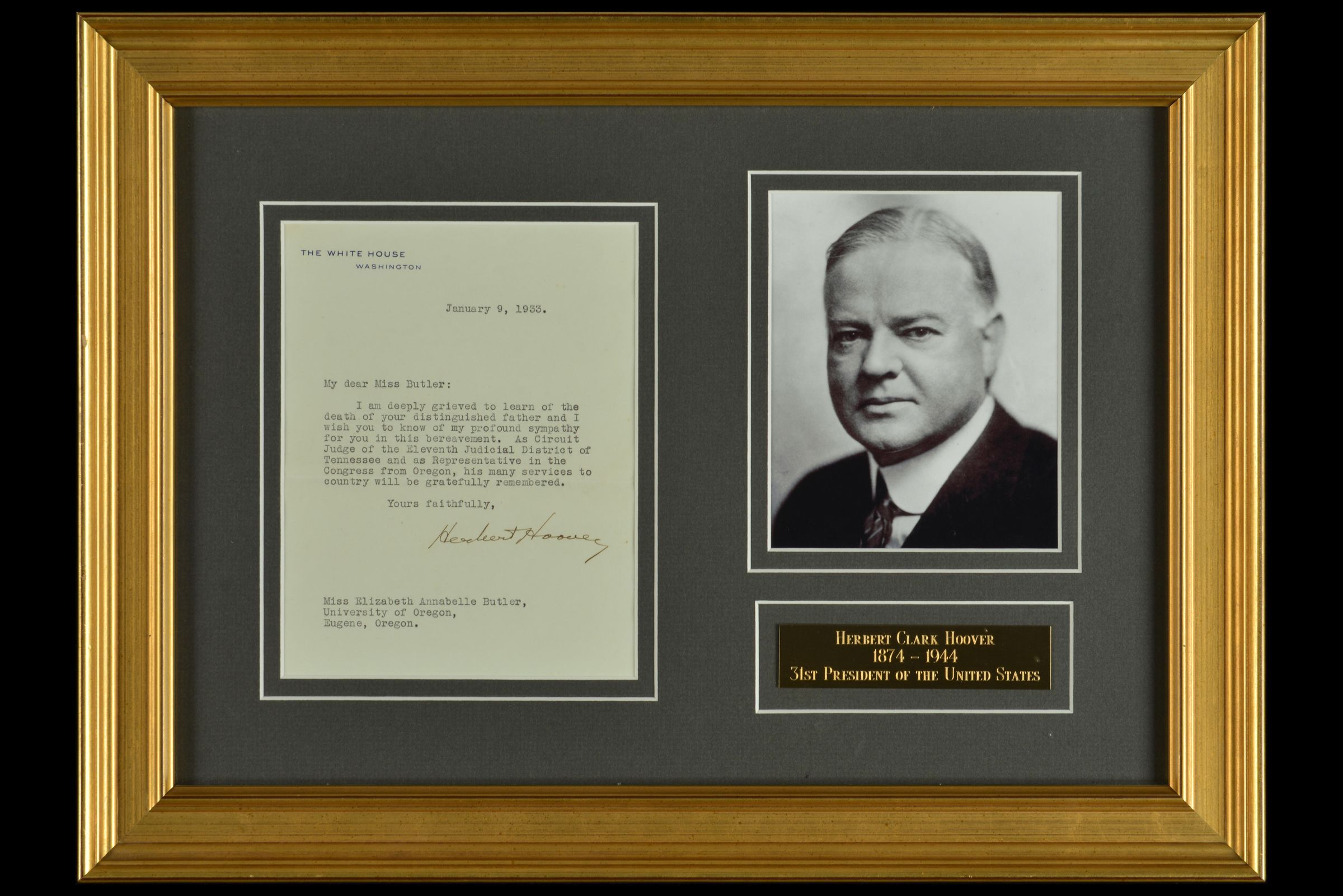 Letter from President Herbert Hoover to Elizabeth Butler, January 9, 1933