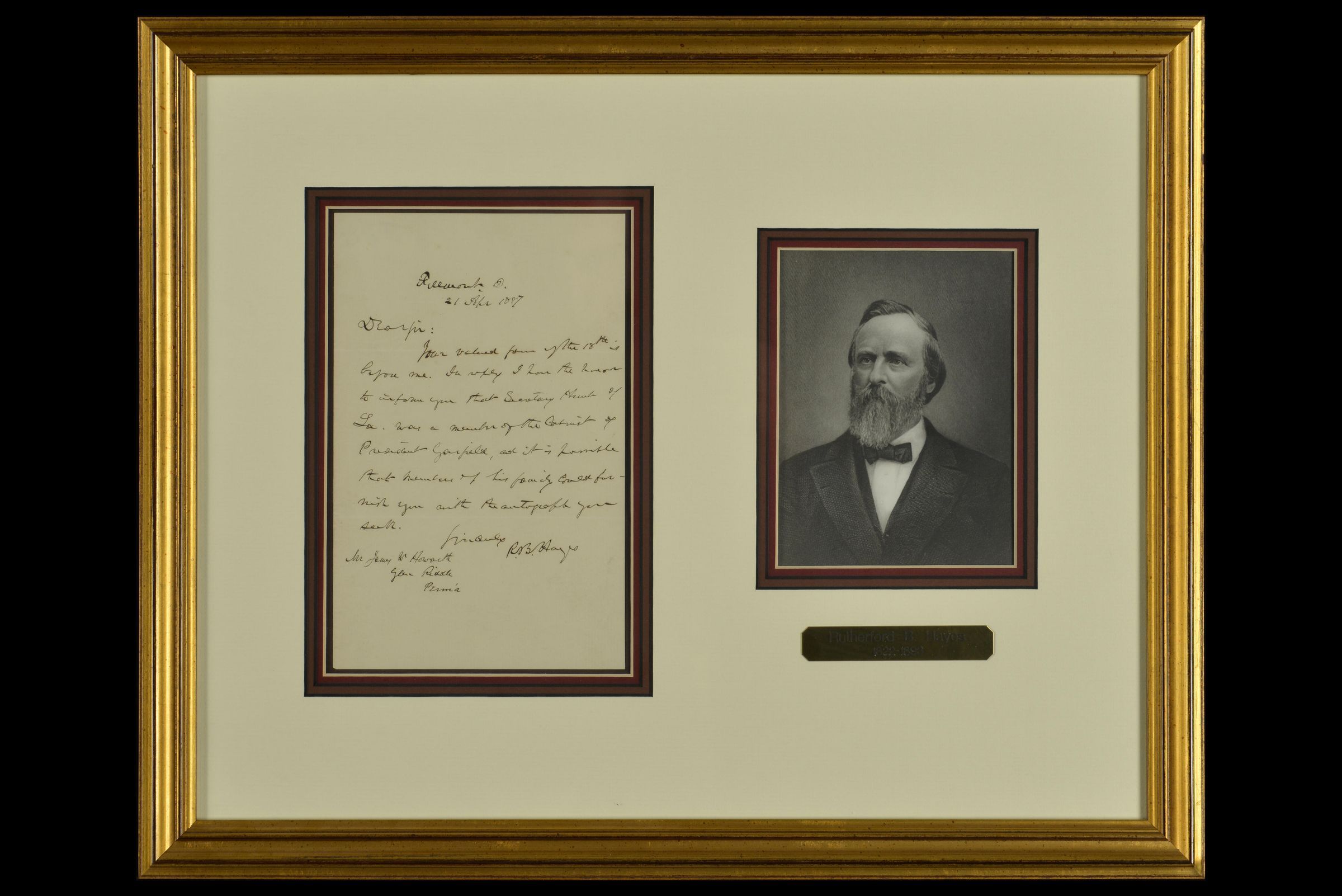 Letter from President Rutherford B. Hayes to James Howarth, April 21, 1887