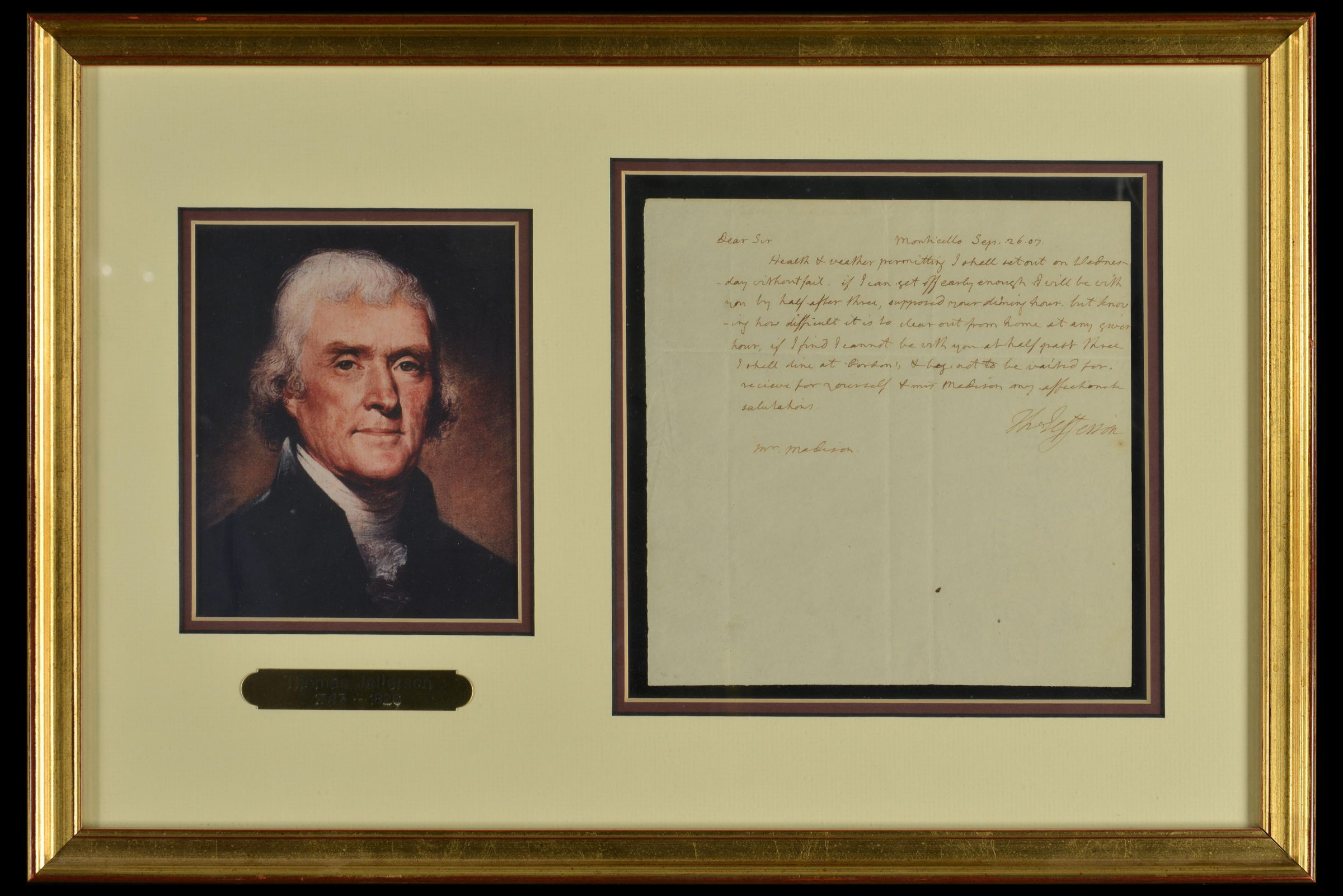 Letter from President Thomas Jefferson to James Madison, September 26, 1807