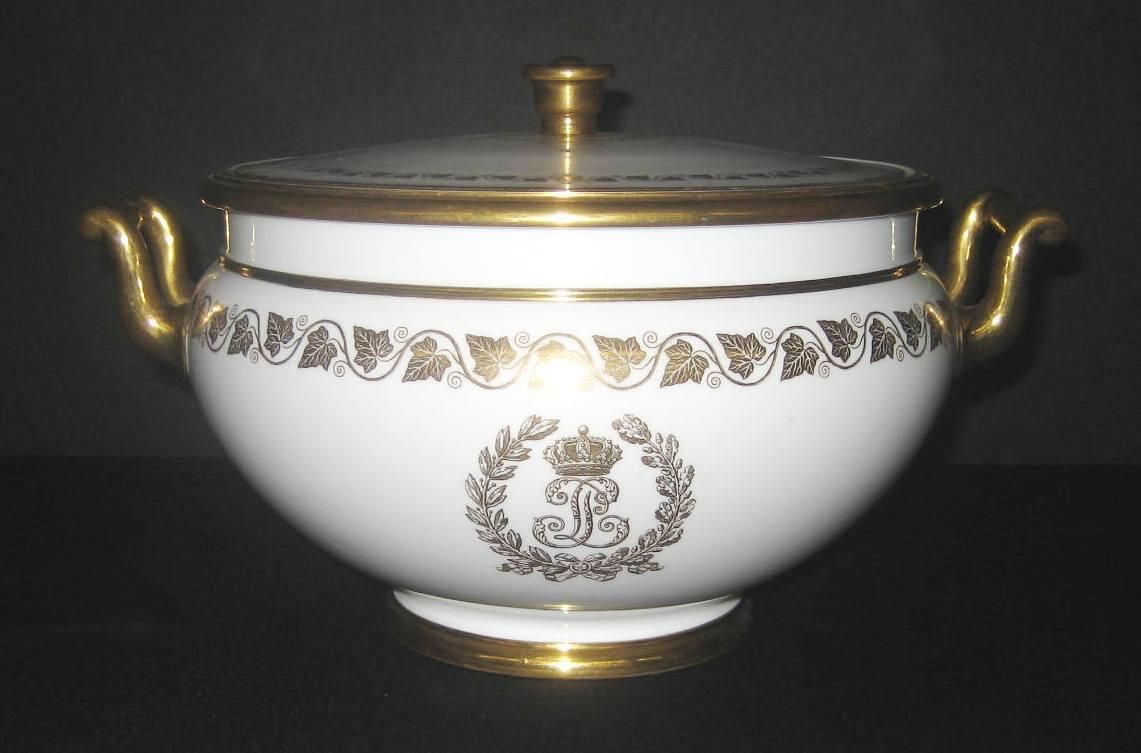 These soft paste porcelain serving dishes are all from a dinner service made for the Tuileries Palace under the reign of Louis Philippe.