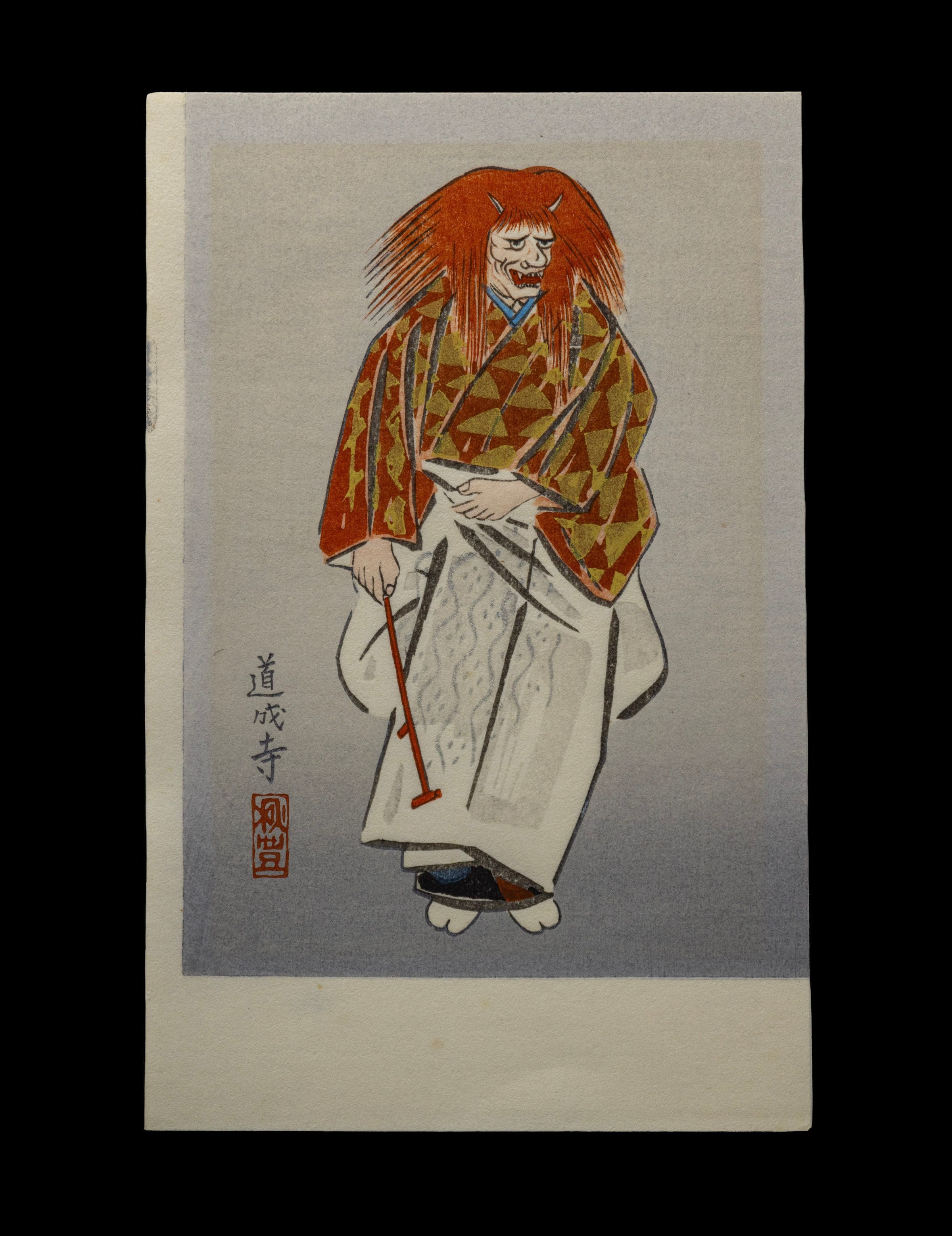 For November, The Drexel Collection chose this intriguing piece from the collection’s extensive variety of Japanese woodblock prints. This print captures a moment from popular kabuki play, “The Maiden at the Dojo Temple”. In this scene, the young maiden transforms herself into a demon, after realizing that her love for a young priest is unrequited. On stage, a skillful actor would achieve the effect of the transformation through a rapid costume change by wearing multiple layers that could be easily removed.