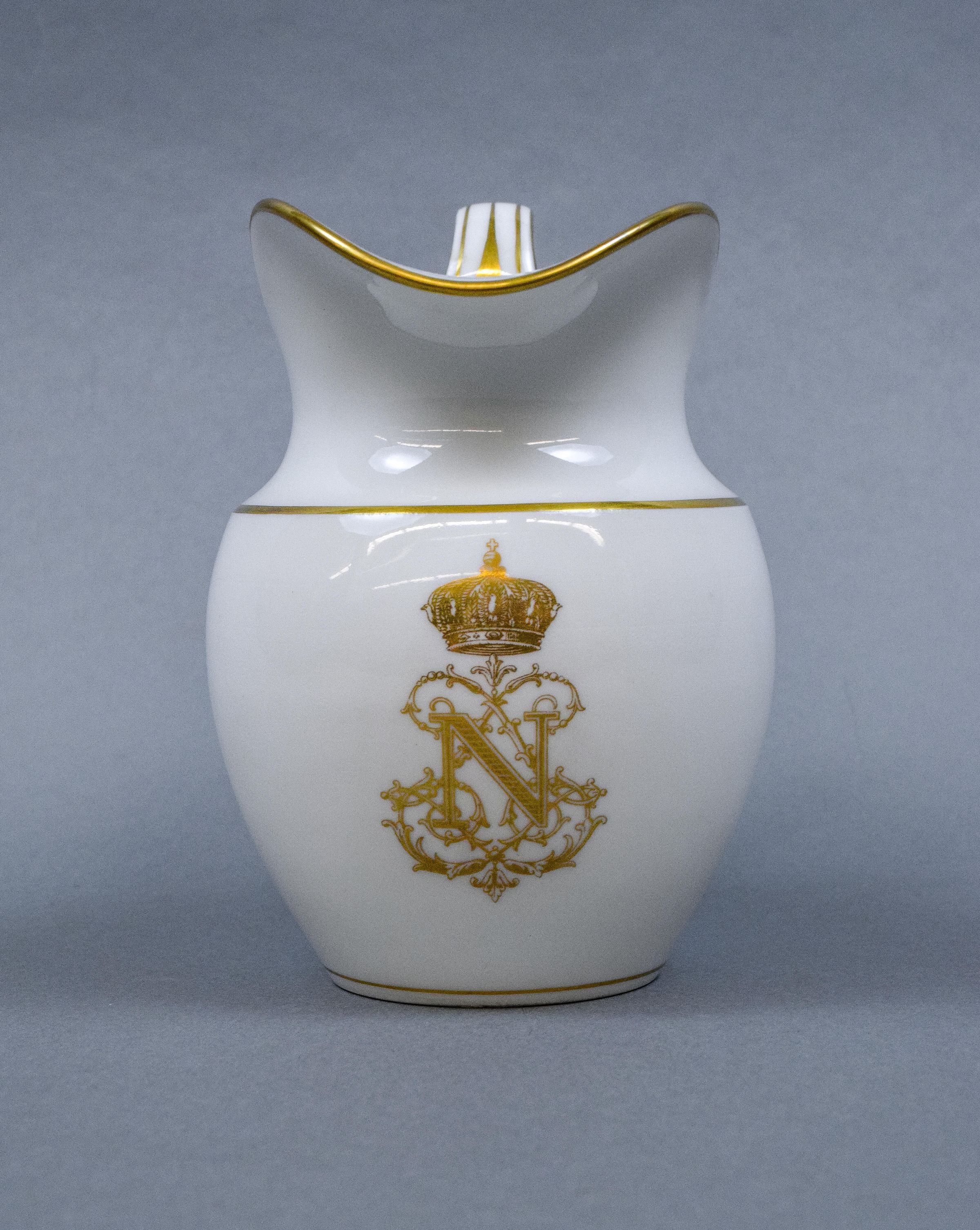 Not only were dinner services designed to be able to combine multiple sets together, but dessert wares, tea wares, and other dining accoutrement would need a similar design in order to be combined for large events. Seen here is a dessert plate, small underliner, and milk jug from Napoleon III’s tea and dessert services.
