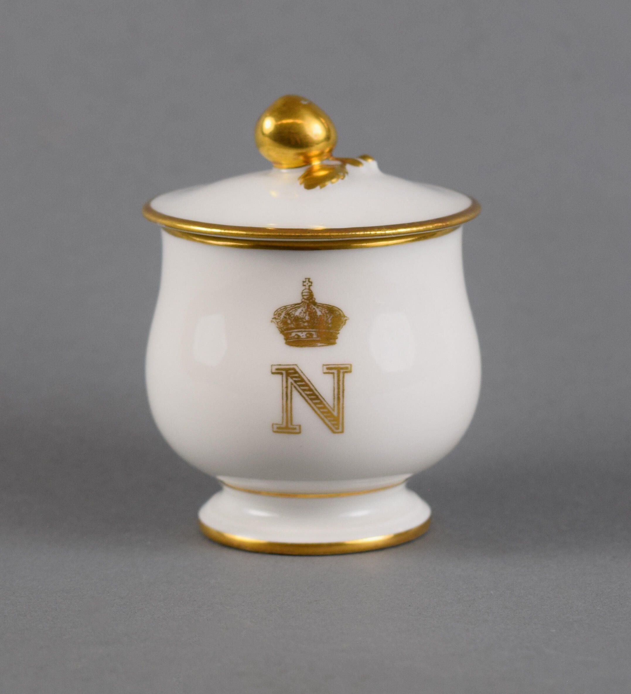 The small custard cup, called a pot-de-crème, was used to serve a sweet dessert cream. Multiple pots-de-crème were often arranged on sets of tiered trays, creating a dramatic center or corner piece on a dessert table.