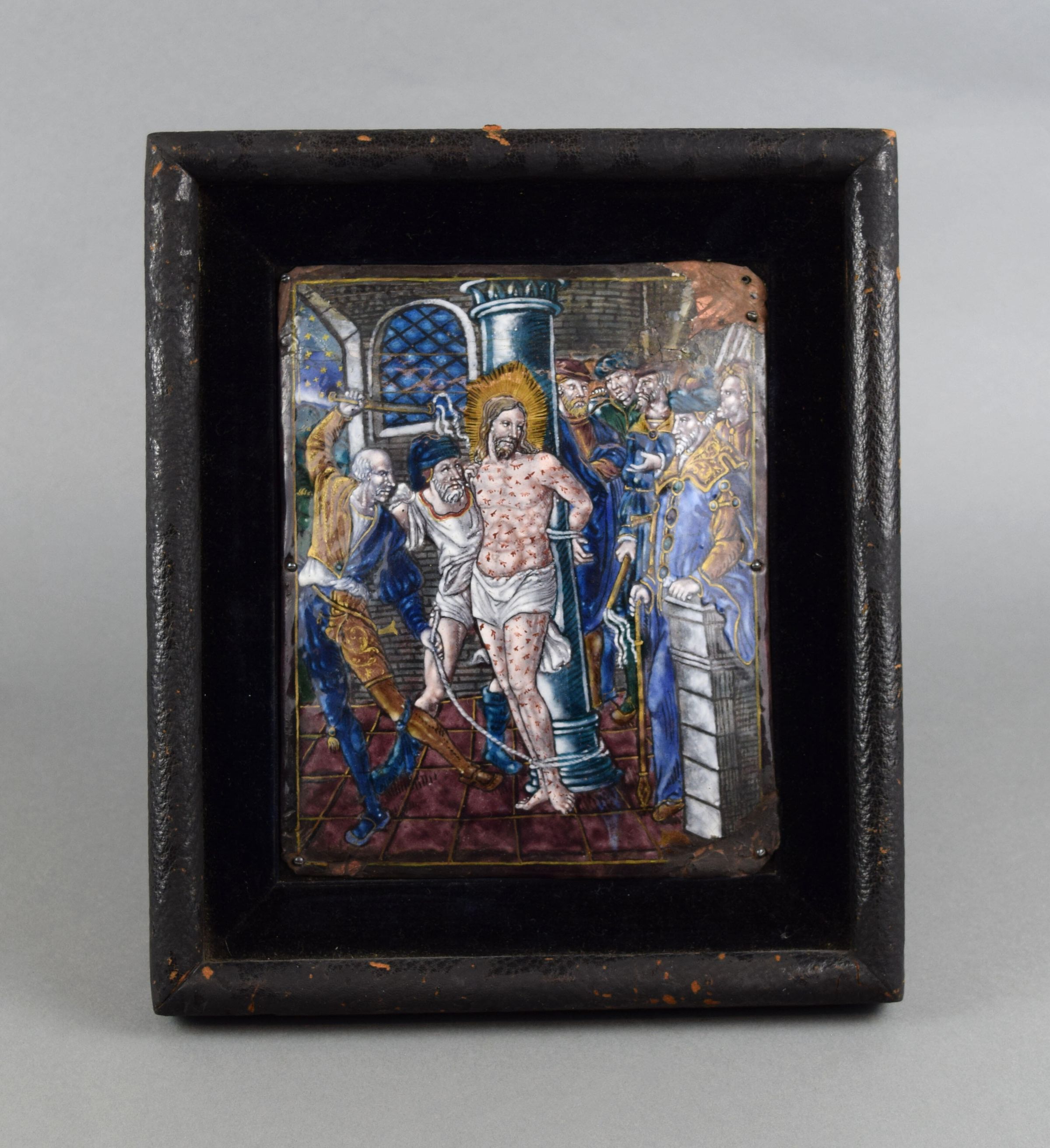 Painted Enamel Copper Plaque of Crucifixion of Christ