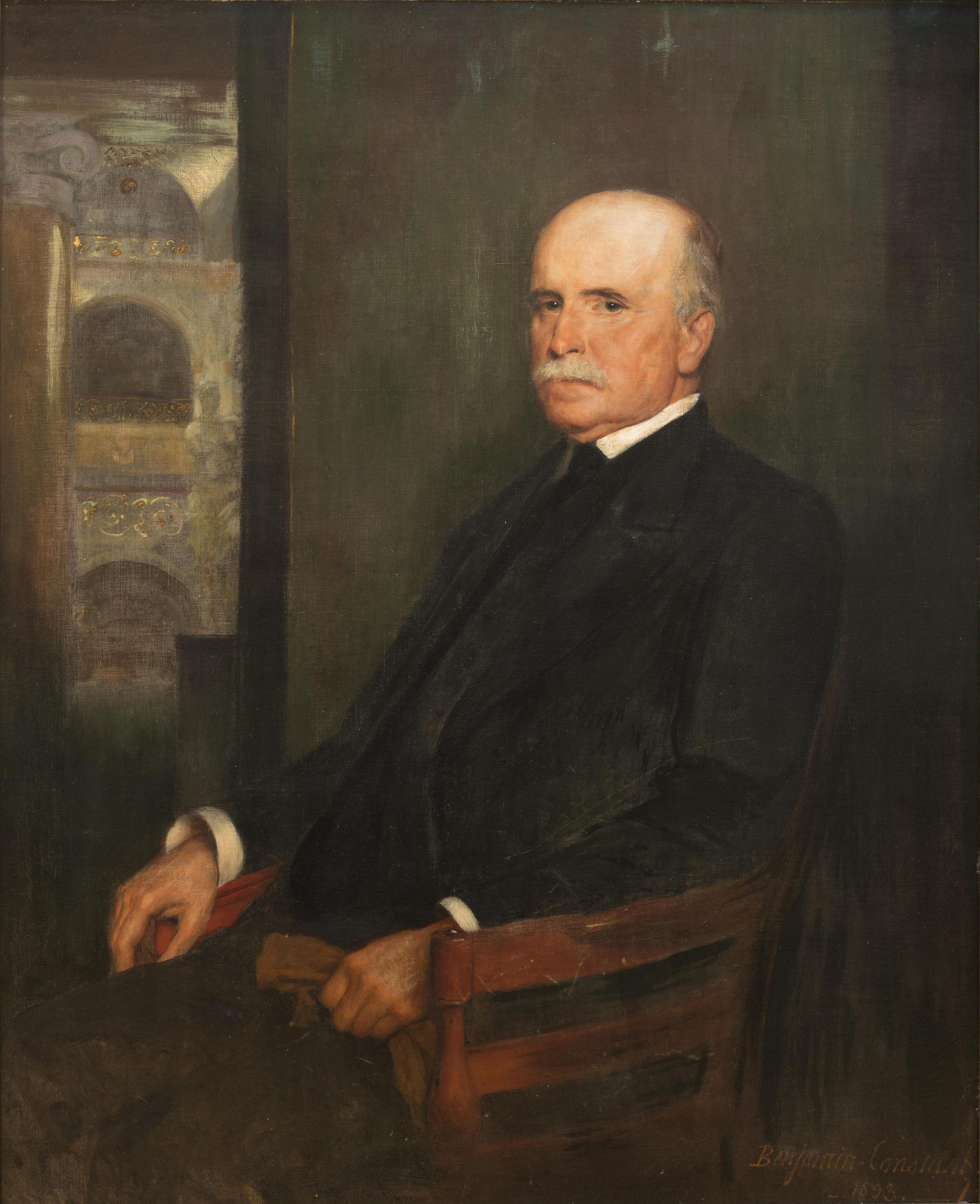 Anthony J. Drexel (1826-1893) was the founder of Drexel Institute of Art, Science and Industry. He was not a self-promoter and was notorious for not wanting his portrait done and in many of our portraits he looks somewhat uncomfortable. He was persuaded by his lifelong friend and businessman George W. Childs to do this painting, but it could not be hung after his death. This painting painted by the French artist Jean Joseph Benjamin Constant (1845-1902) is now hanging in the Paul Peck Alumni Center.