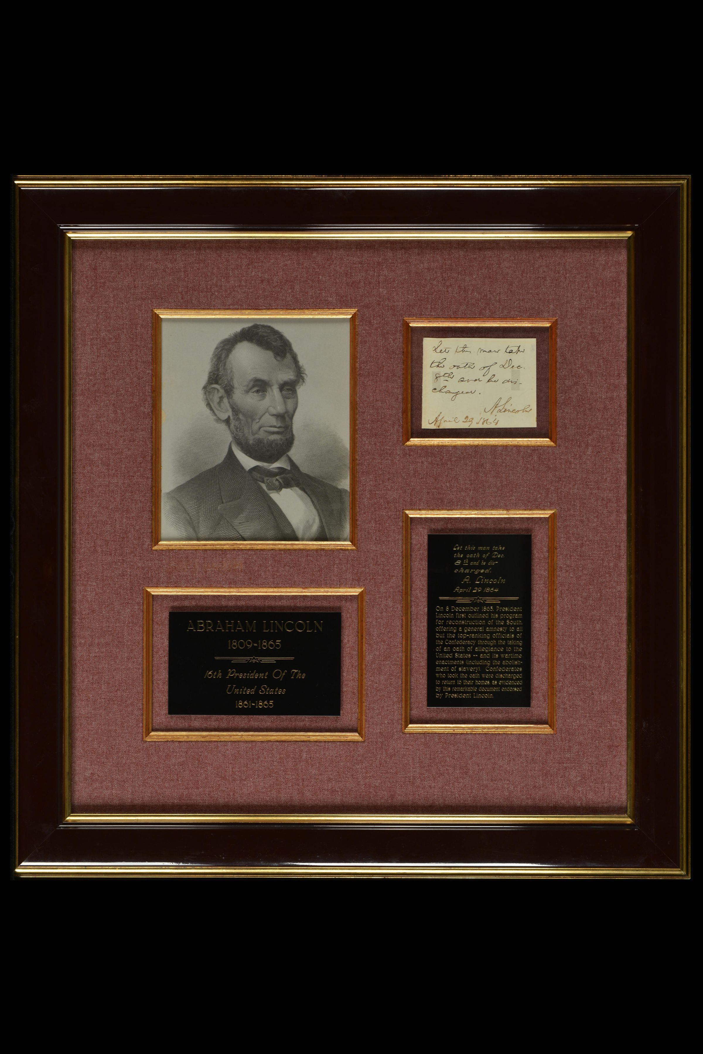 Signed Note from President Abraham Lincoln, April 29, 1864