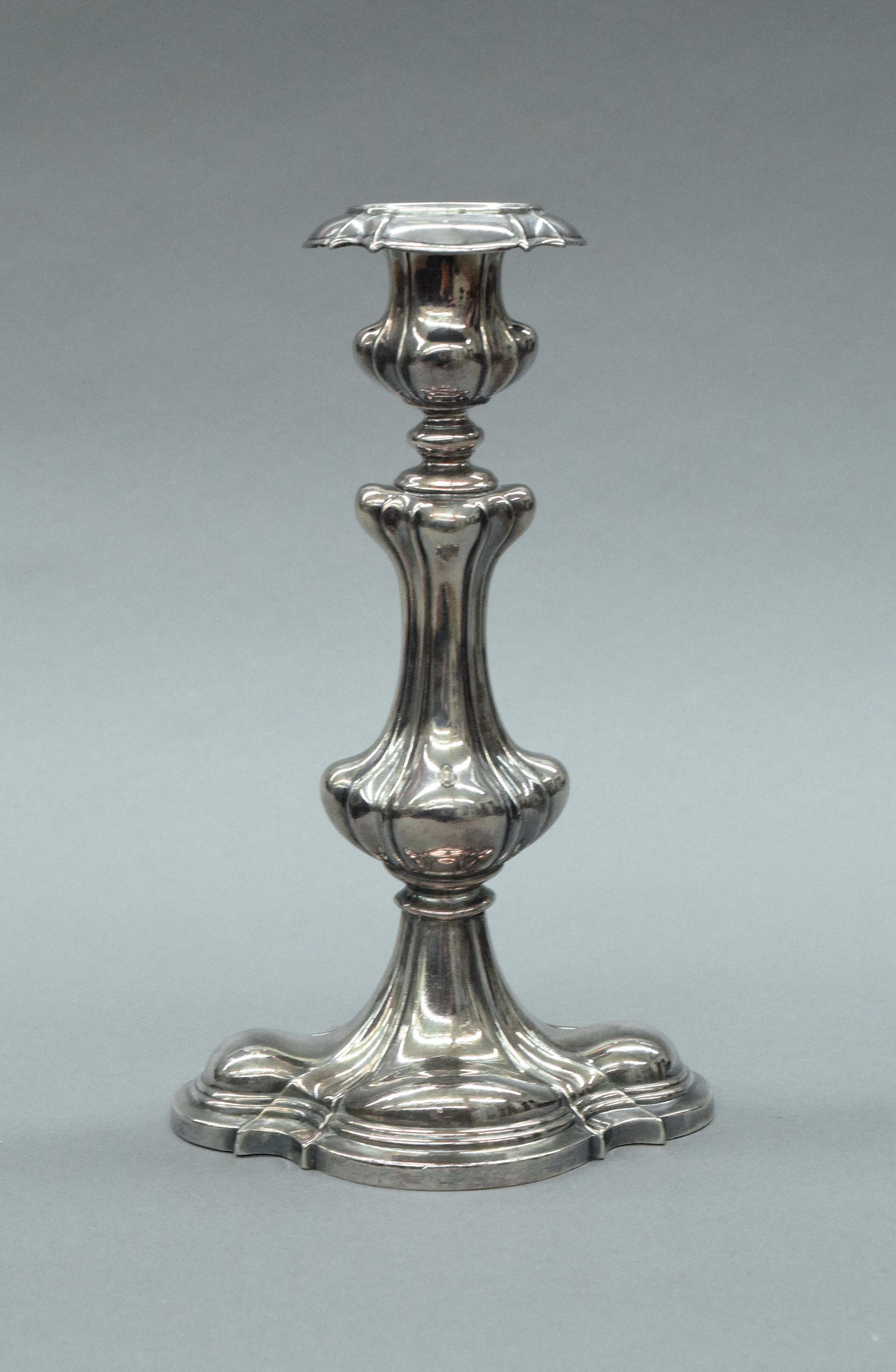 The Rococo Revival was one of the first styles to embrace the new technologies introduced by the Industrial Revolution. This silver-plated candlestick is an example of the new technique of electroplating developed by Luigi Brugnatelli around 1801.