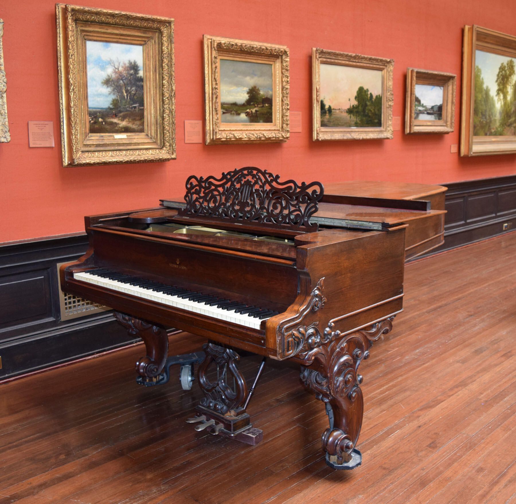 This rosewood Steinway piano belonged to Anthony J. Drexel. He was known to be a private man, but we can have a glimpse into his life from a tribute written by the first dean of men of the Institute, J. Peterson Ryder. He wrote, “Their home had all the charm of an older civilization. Anthony Joseph’s chief pleasure was to spend his evenings in the music room, which had two pianos, playing duets and quartettes from the Old Masters with his daughters.”