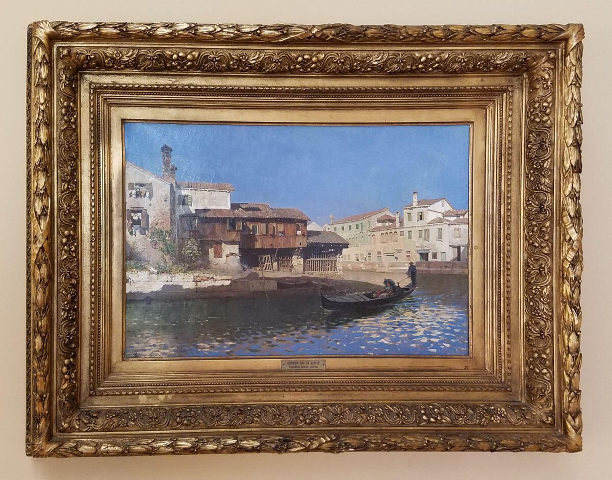 To welcome summer, the Drexel Collection chose this seasonal scene titled Summer Day in Venice by Rubens Santoro. Rubens painted from life and incorporated scenes from his European travels, especially Venice. Although Rubens appears to have lived and worked exclusively in Italy, he exhibited his work throughout the world in Chicago, Paris, London, Rome, and Leningrad. This shaded canal scene looks like quite the refreshing retreat from the hot Mediterranean sun!Label Type