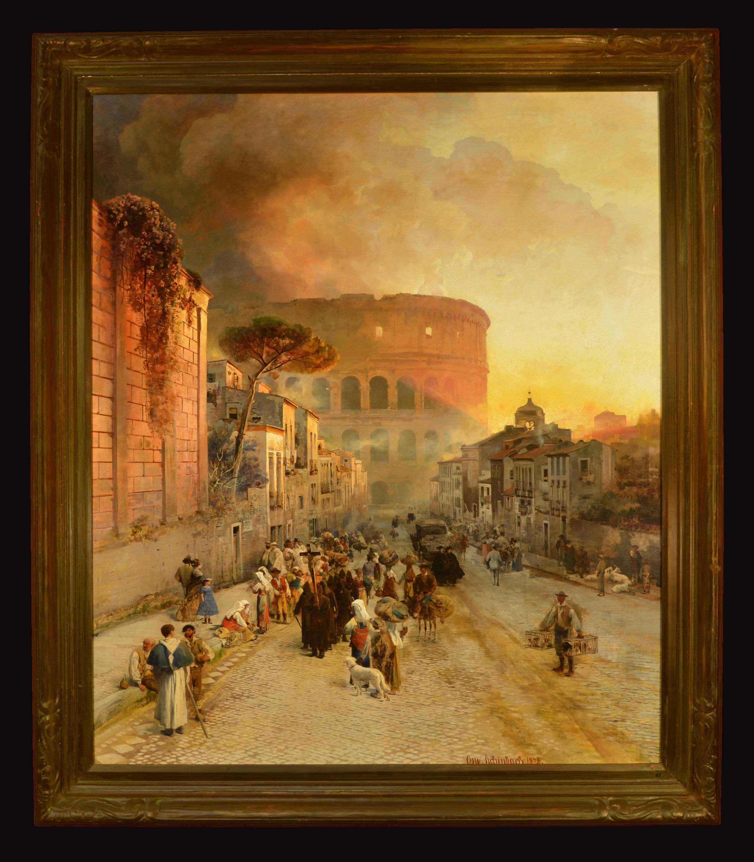Oswald Achenbach was a leading artist in Düsseldorf Academy who had a fondness for Italy, as the scenes and architecture of that country featured prominently in his work throughout his life. Achenbach was an excellent draftsman who liked to portray people in processions, religious festivals and even markets.