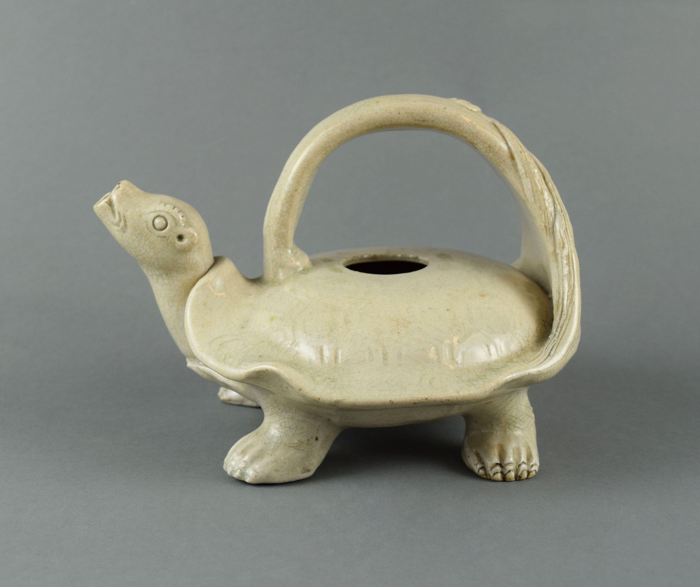 This simply decorated wine pot in the shape of a turtle was a common