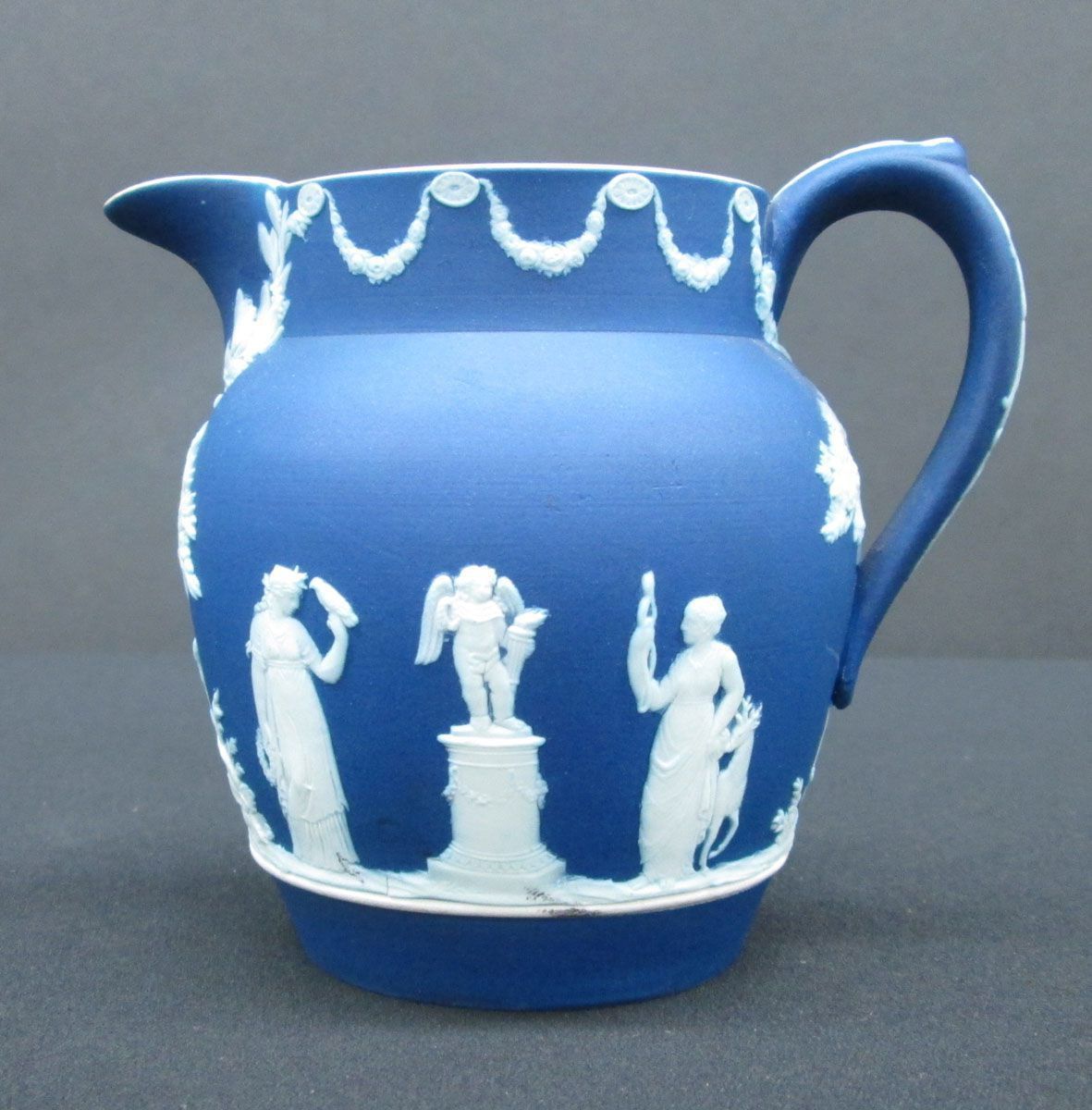The blue jasperware teapot and cream jugs, decorated in the pâte-sur-pâte, or paste on paste, style are some particularly handsome late-19th-century samples of Wedgwood Blue tea-time vessels.