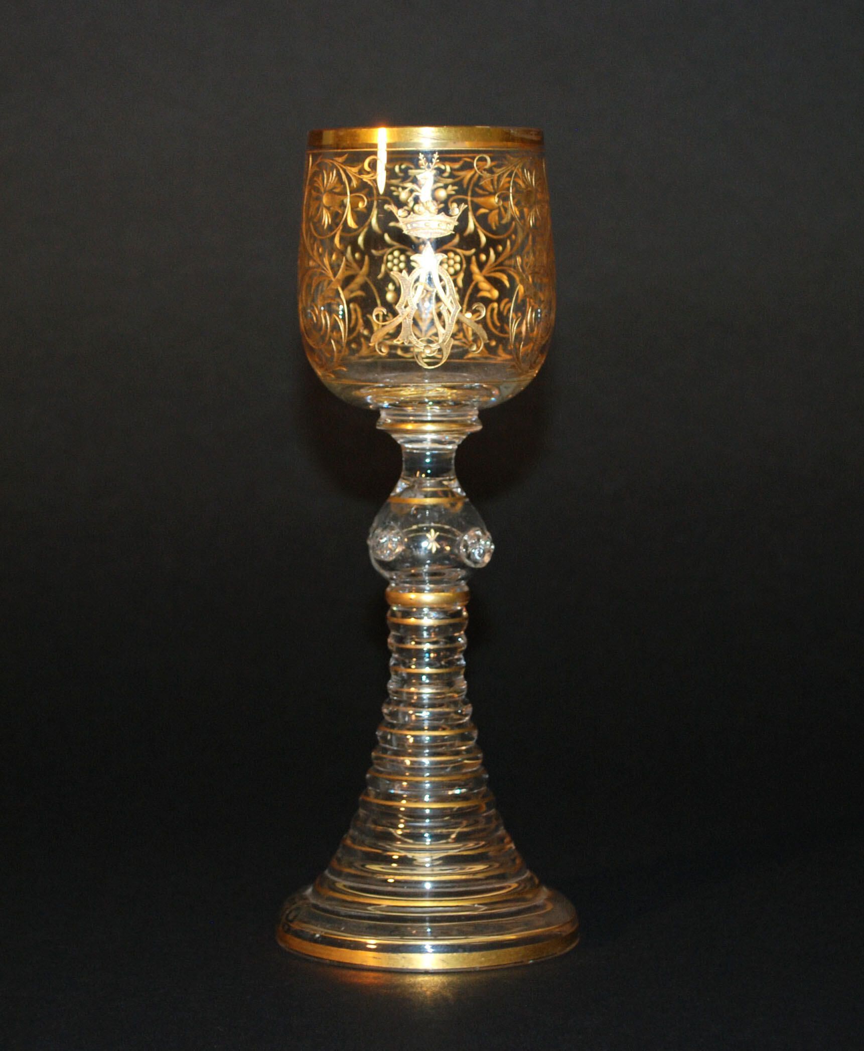 These wine glasses were made in the mid to late 19th century in Venice, Italy. They are decorated with the Drexel family crest.Label Type