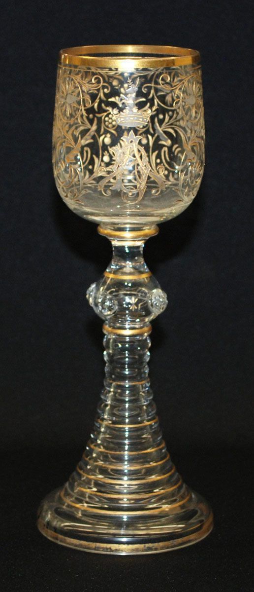 These wine glasses were made in the mid to late 19th century in Venice, Italy. They are decorated with the Drexel family crest.