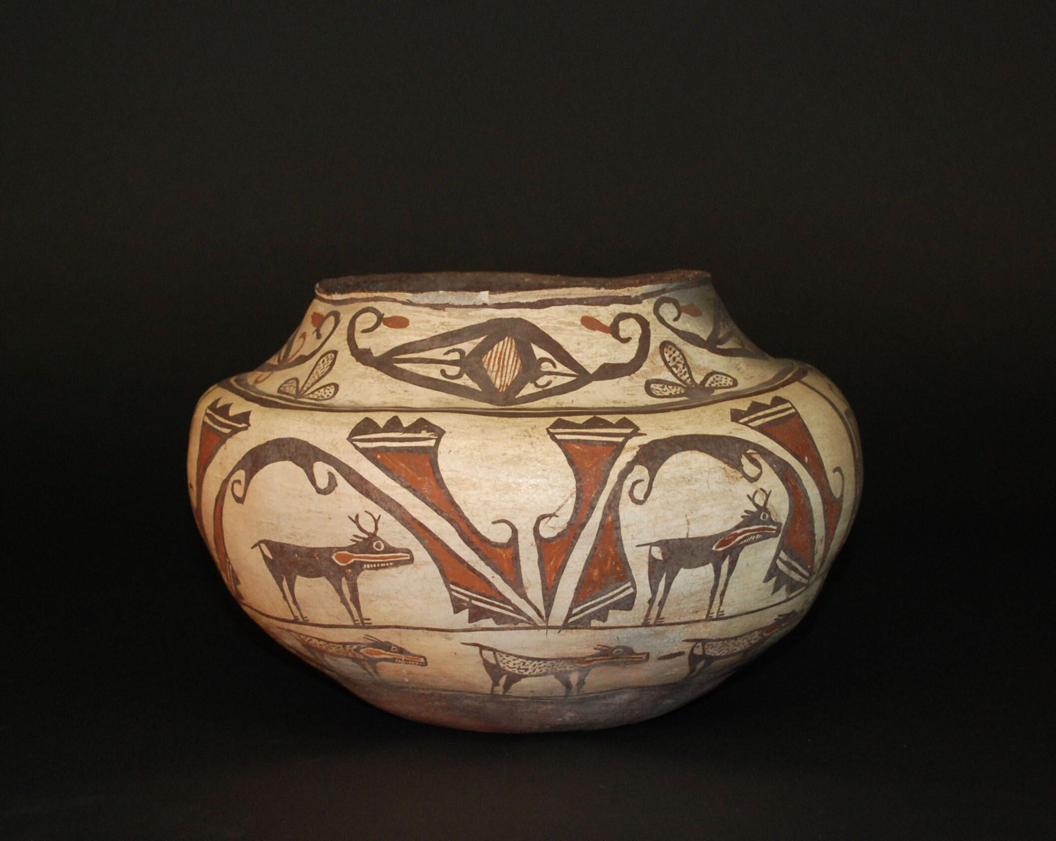 This vessel was made by the Zuni, a Pueblo people located in New Mexico, c. 1890.Label Type
