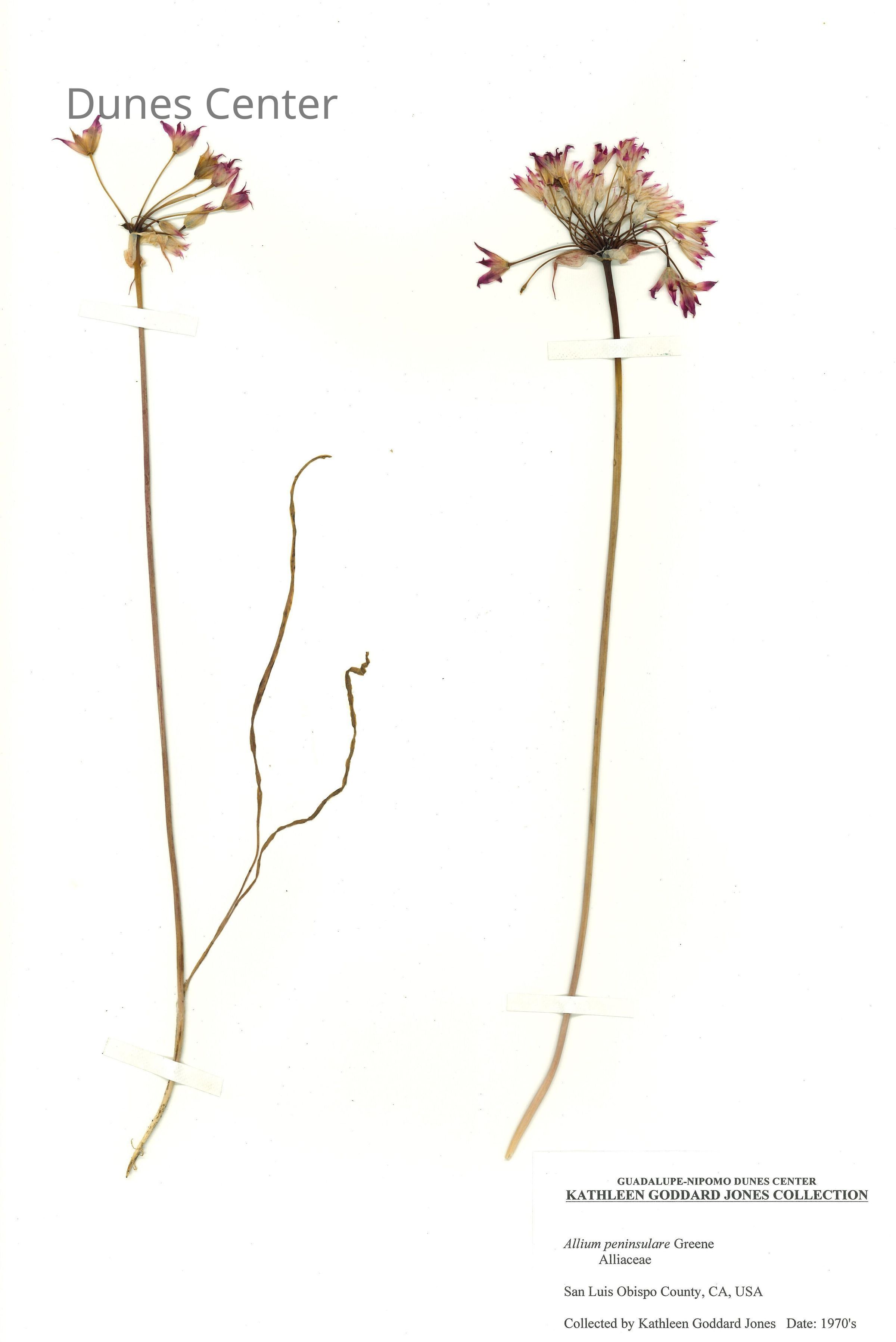 Common Name: Mexicali Onion Scientific Name: Allium peninsulare Lemmon ex Greene Family: Alliaceae San Luis Obispo County, CA, USA Collected by Kathleen Goddard Jones Date: 1970'sCollection