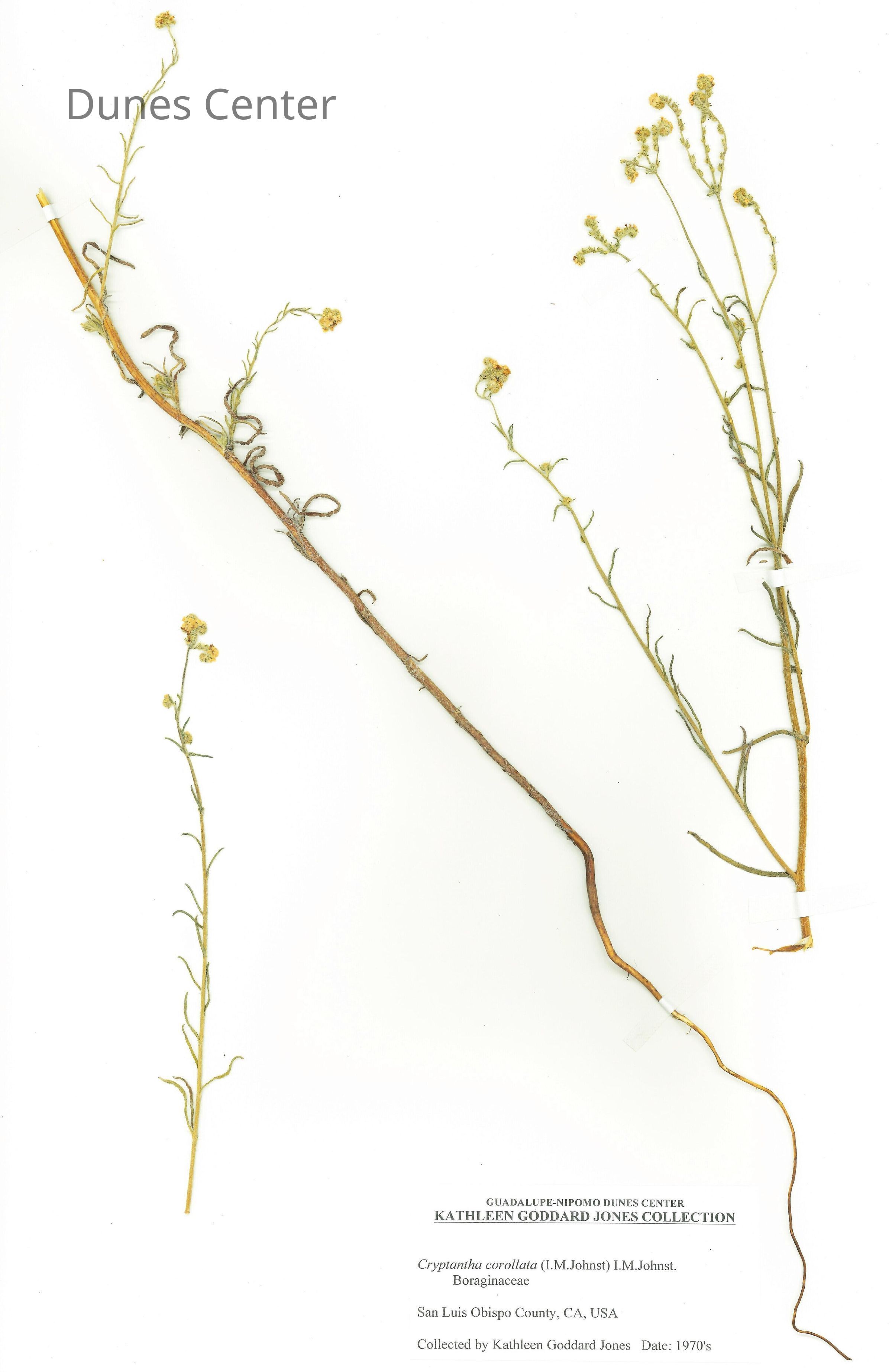 Common Name: Coast Range Cryptantha Scientific Name: Cryptantha corollata (I. M. Johnst.) I. M. Johnst. Family: Boraginaceae San Luis Obispo County, CA, USA Collected by Kathleen Goddard Jones Date: 1970'sCollection