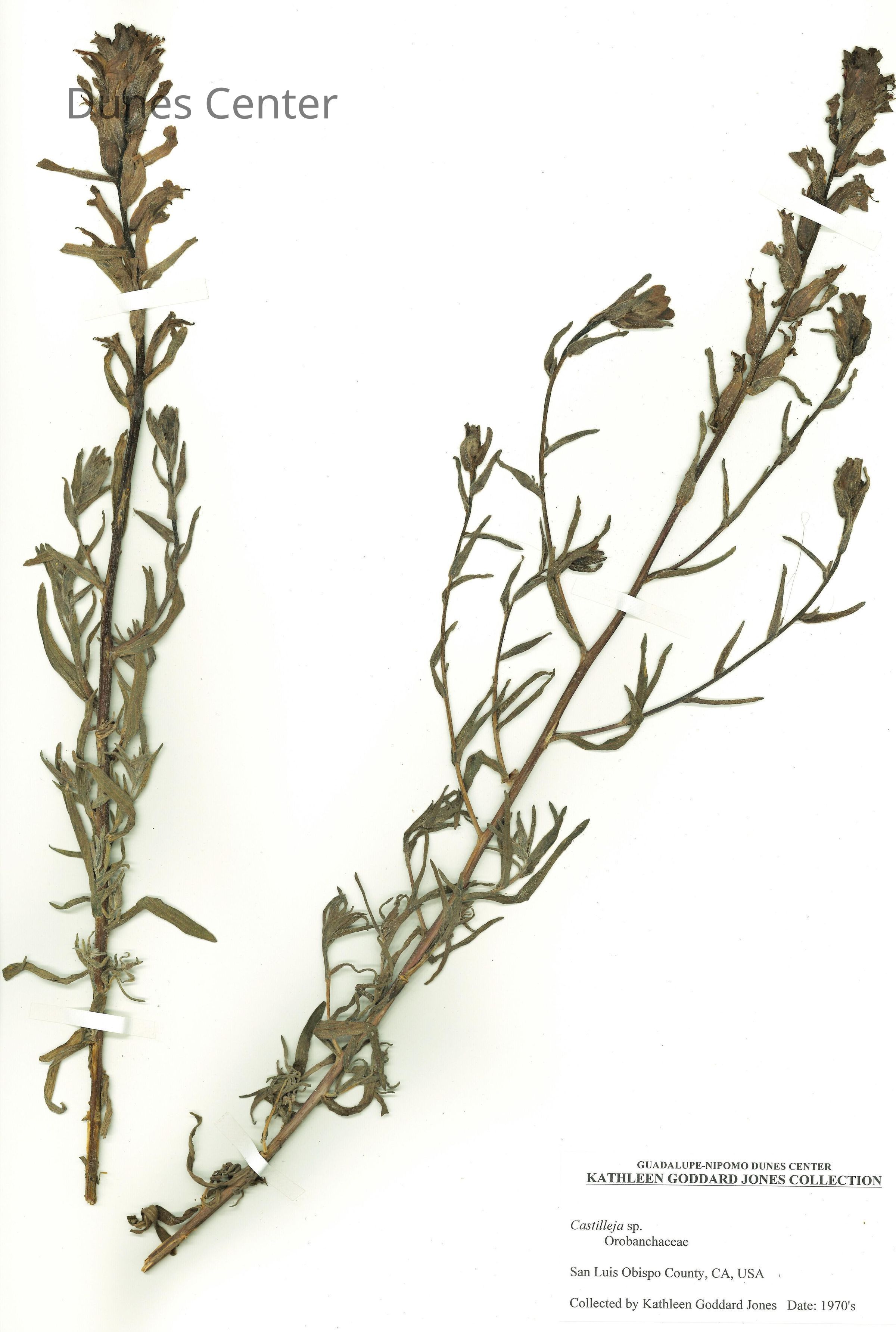 Common Name: Indian Paintbrush Scientific Name: Castilleja sp. Family: Orobanchaceae San Luis Obispo County, CA, USA Collected by Kathleen Goddard Jones Date: 1970'sCollection